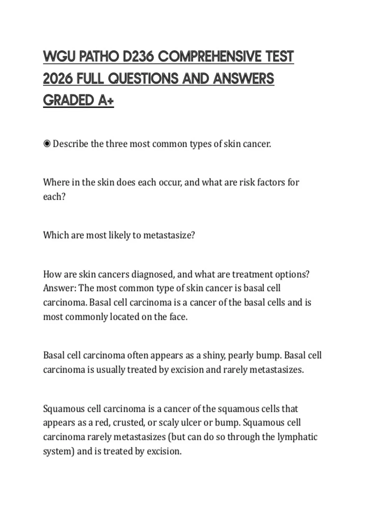 WGU PATHO D236 COMPREHENSIVE TEST 2026 FULL QUESTIONS AND ANSWERS GRADED A+