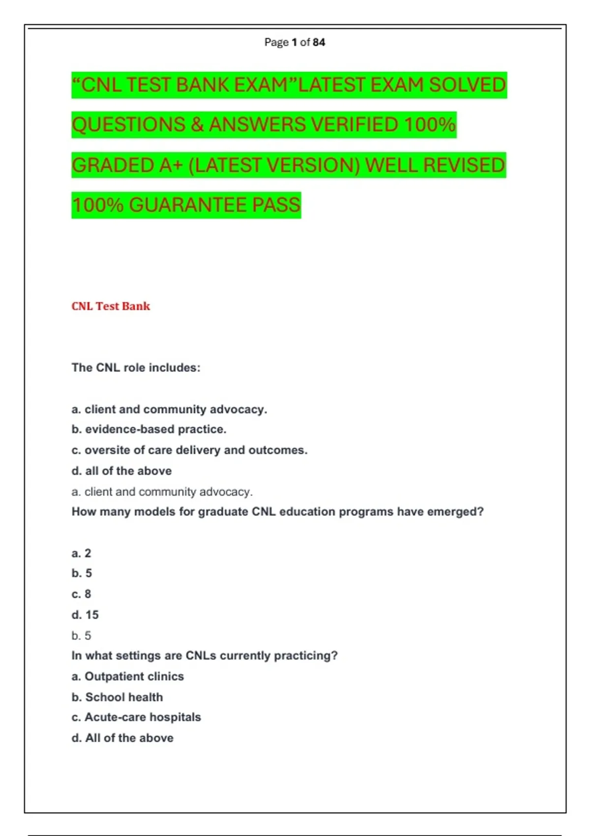 “CNL TEST BANK EXAM”LATEST EXAM SOLVED