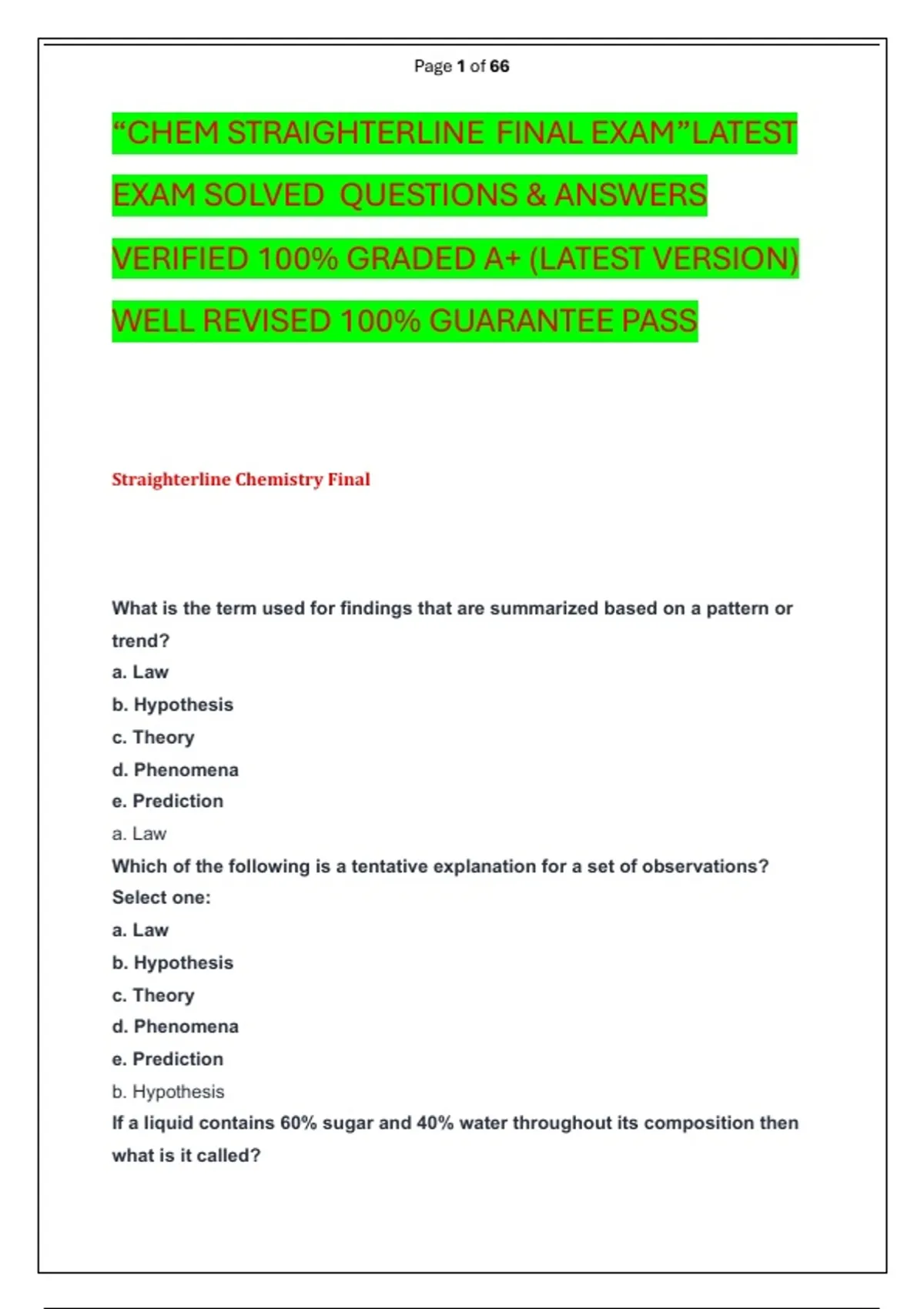 “CHEM STRAIGHTERLINE FINAL EXAM”LATEST EXAM SOLVED QUESTIONS & ANSWERS VERIFIED 100% GRADED A+ (LATEST VERSION) WELL REVISED 100% GUARANTEE PASS
