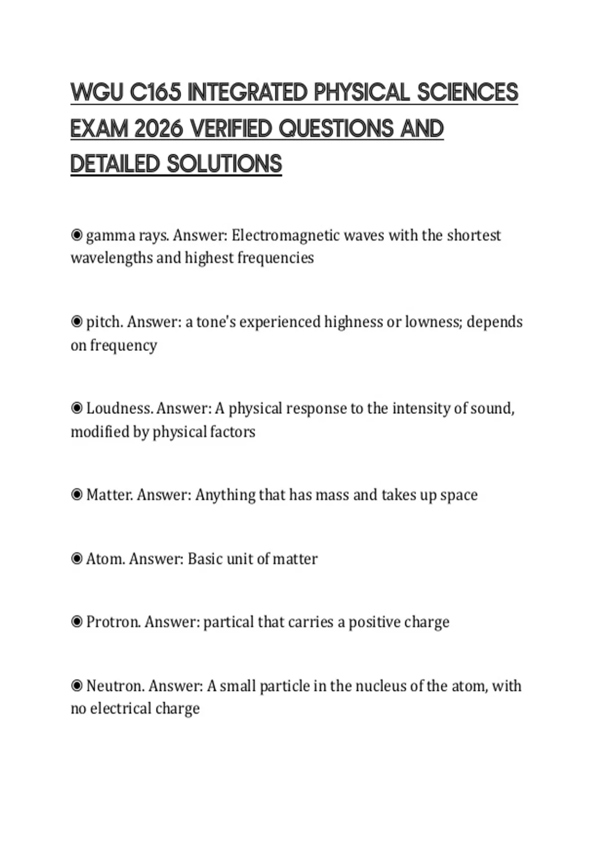 WGU C165 INTEGRATED PHYSICAL SCIENCES EXAM 2026 VERIFIED QUESTIONS AND DETAILED SOLUTIONS