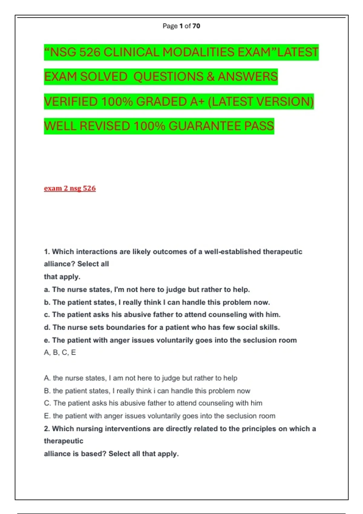 “NSG 526 CLINICAL MODALITIES EXAM”LATEST