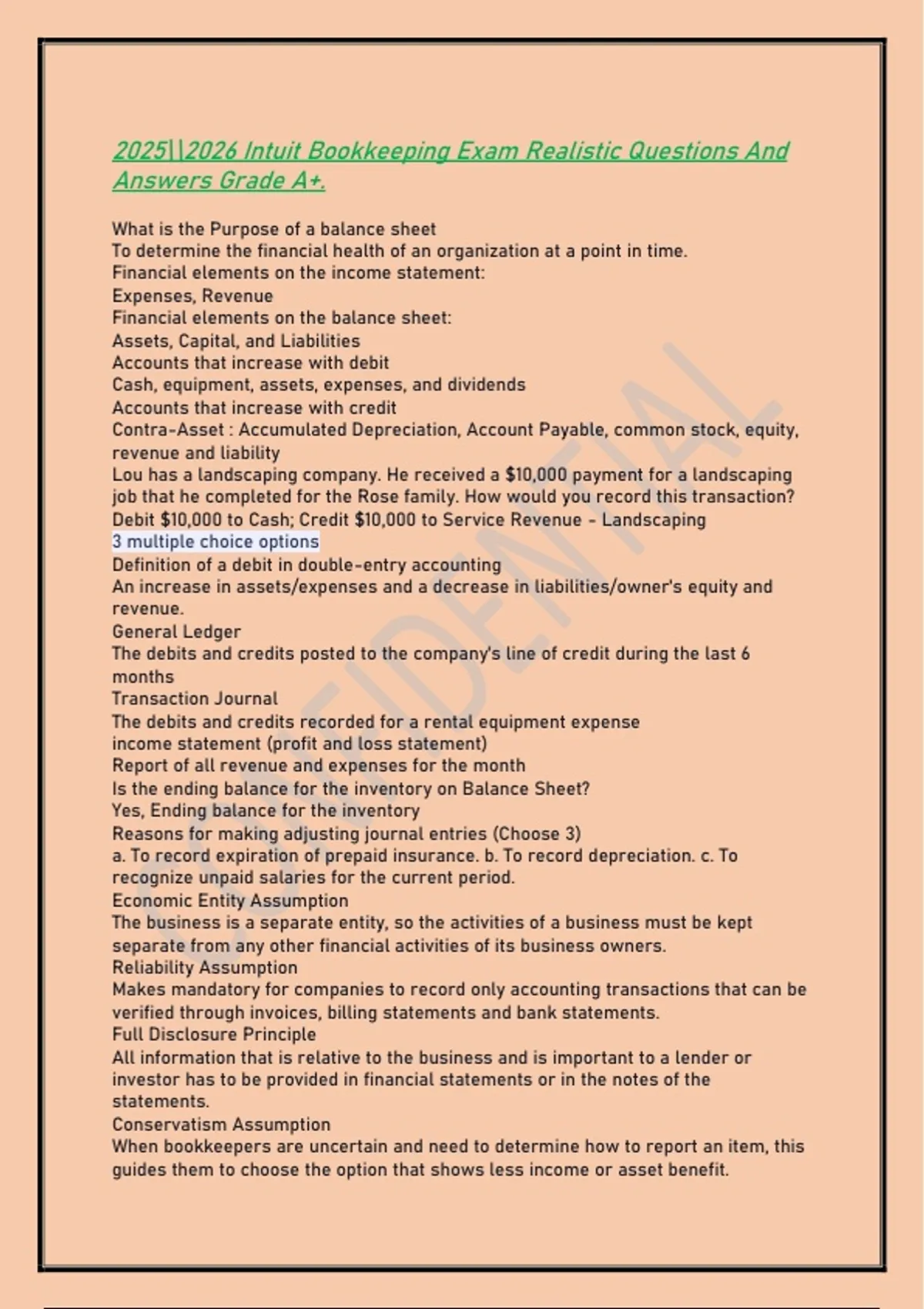 2025\\2026 Intuit Bookkeeping Exam Realistic Questions And