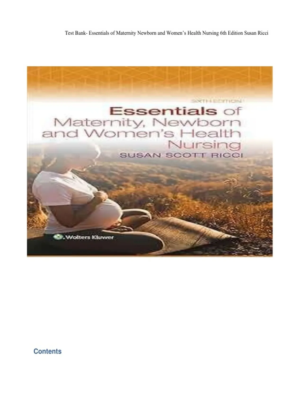 , Test Bank- Essentials of Maternity Newborn and Women’s Health Nursing 6th Edition Susan Ricci