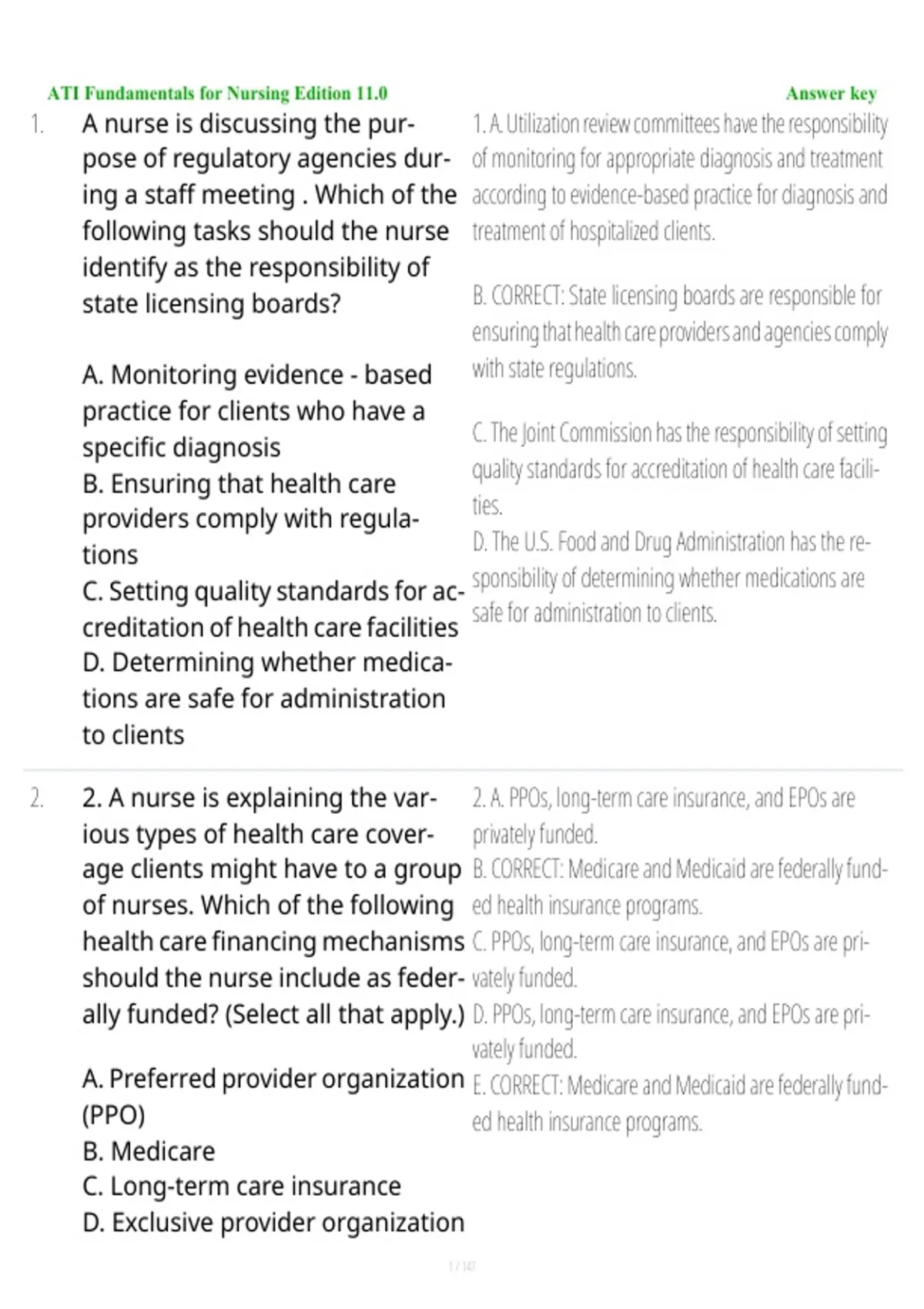 2. 2. A nurse is explaining the var- 2. A. PPOs, long-term care insurance, and EPOs are