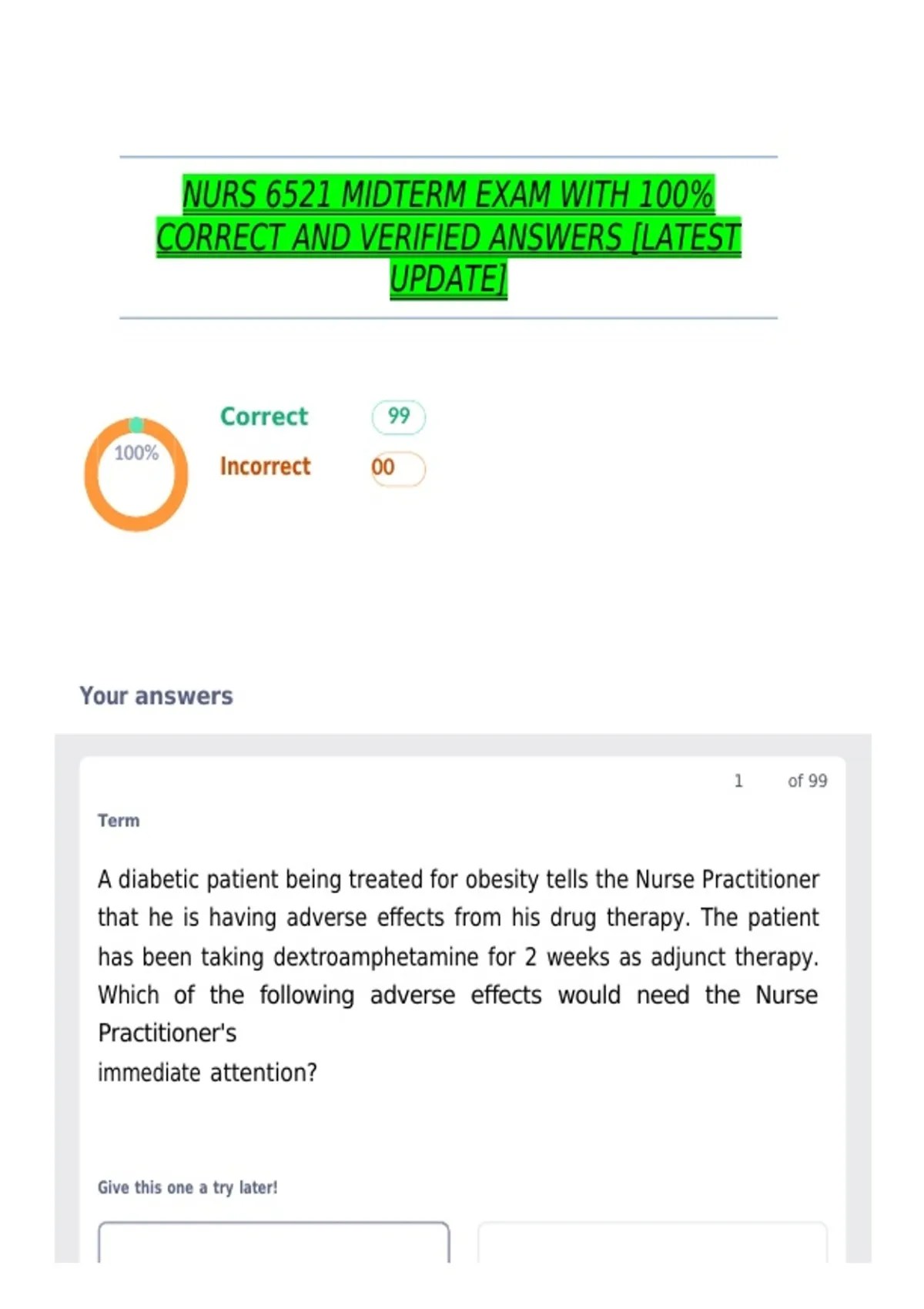 NURS 6521 MIDTERM EXAM WITH 100% CORRECT AND VERIFIED ANSWERS [LATEST UPDATE]