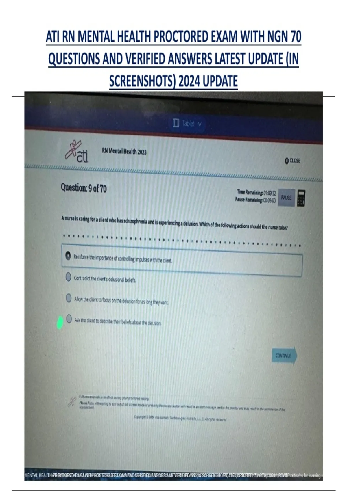 ATI RN MENTAL HEALTH PROCTORED EXAM WITH NGN 70