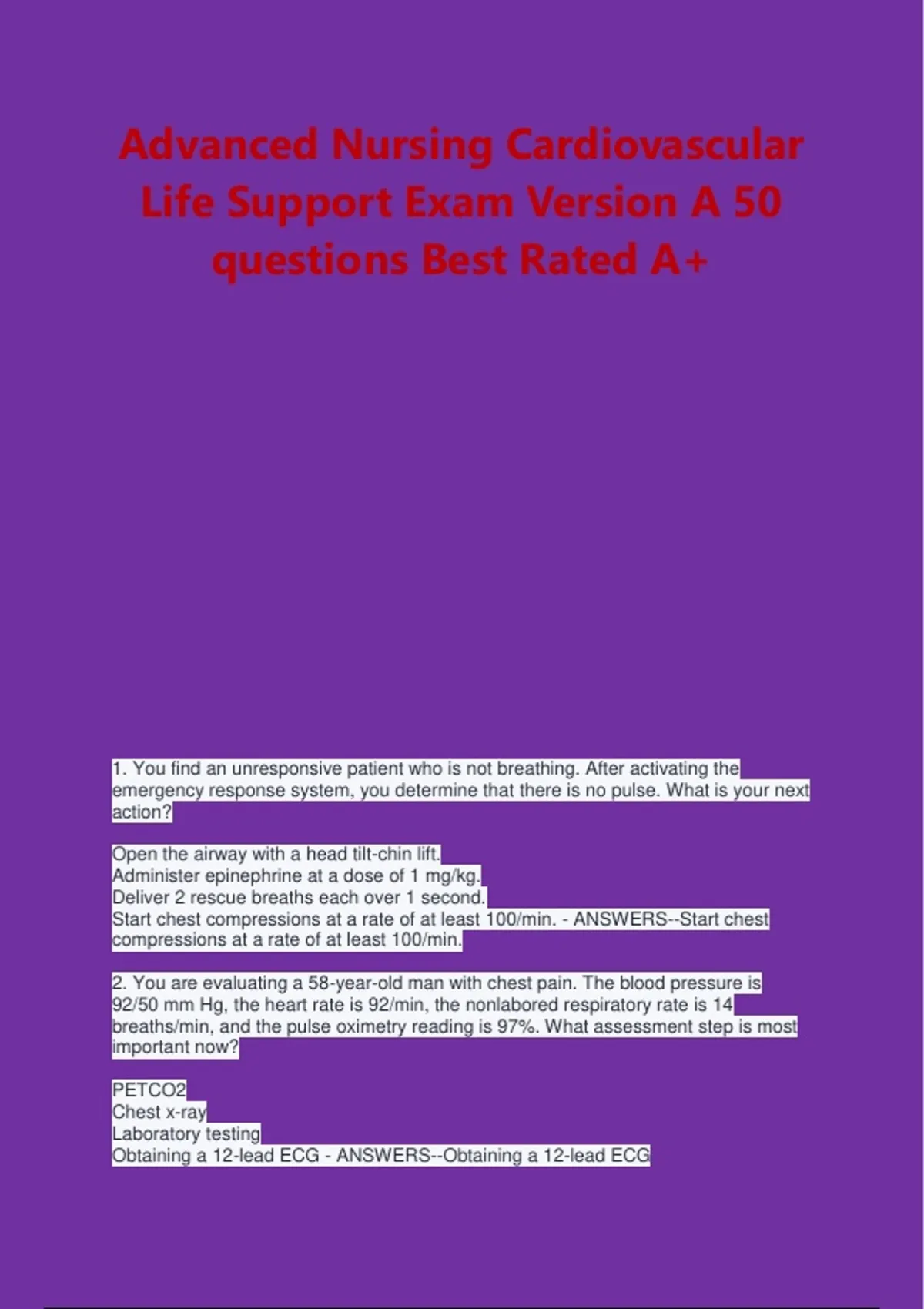 Start chest compressions at a rate of at least 100/min. - ANSWERS--Start chest