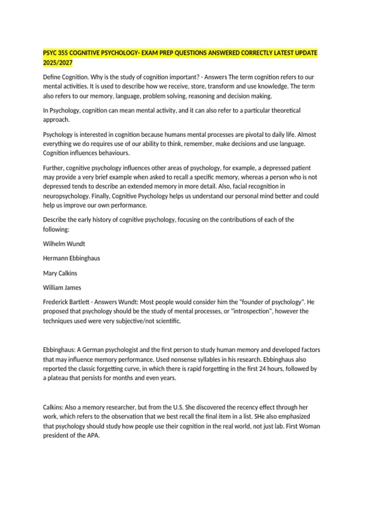 Calkins: Also a memory researcher, but from the U.S. She discovered the recency effect through her