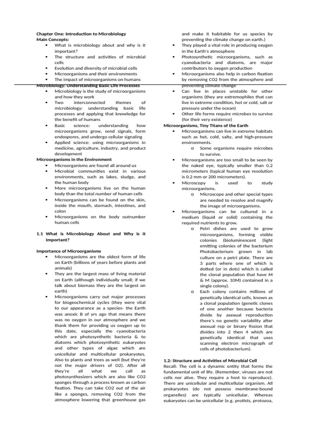 Chapter One: Introduction to Microbiology and make it habitable for us species by