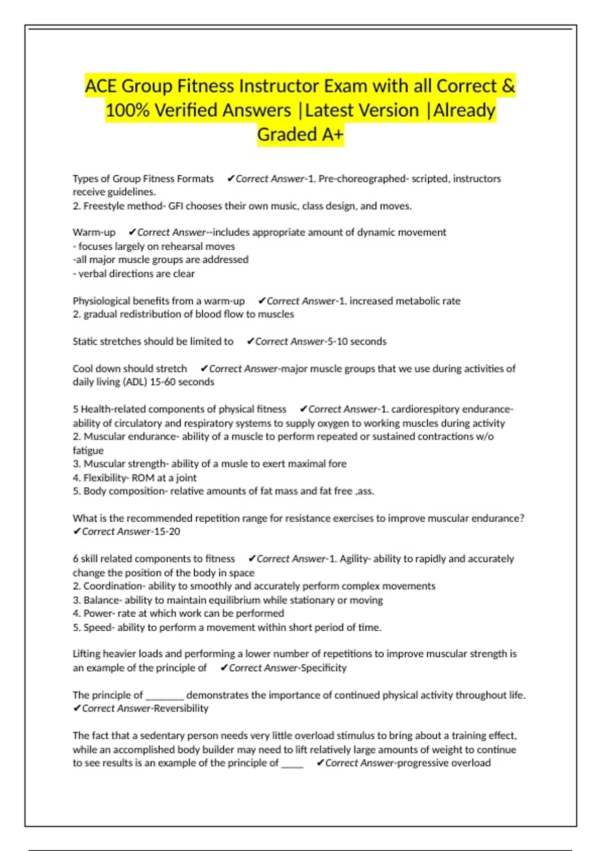 Warm-up ✔Correct Answer--includes appropriate amount of dynamic movement