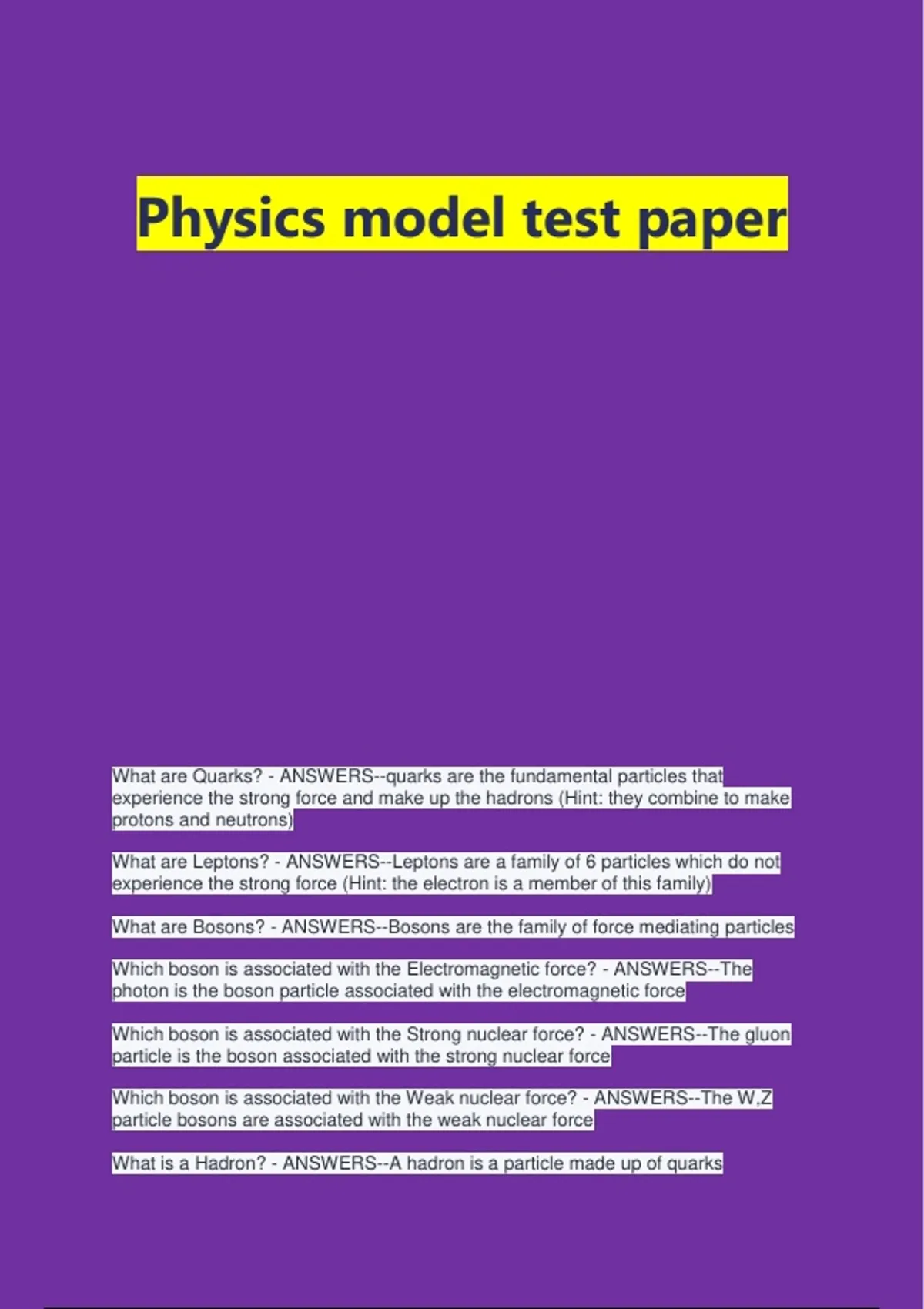 Physics model test paper