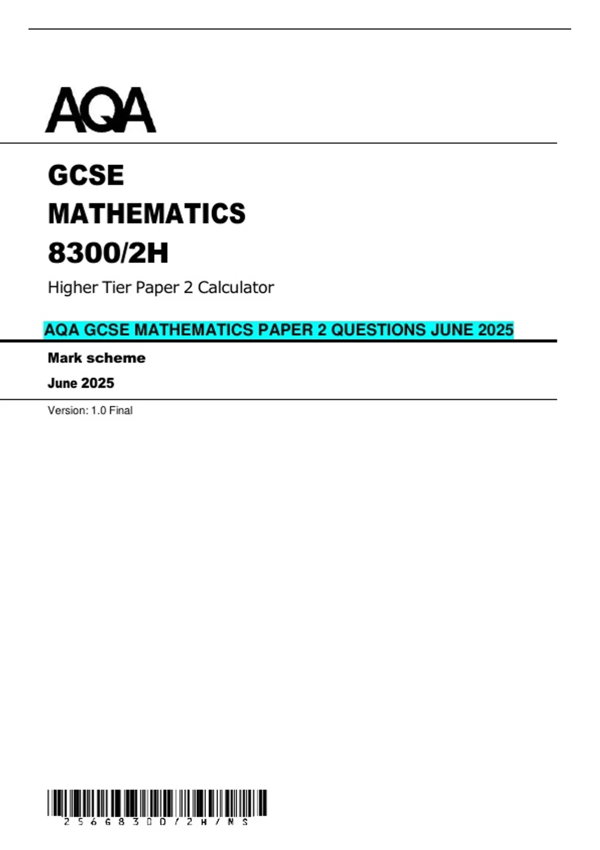 AQA GCSE MATHEMATICS PAPER 2 QUESTIONS JUNE 2025