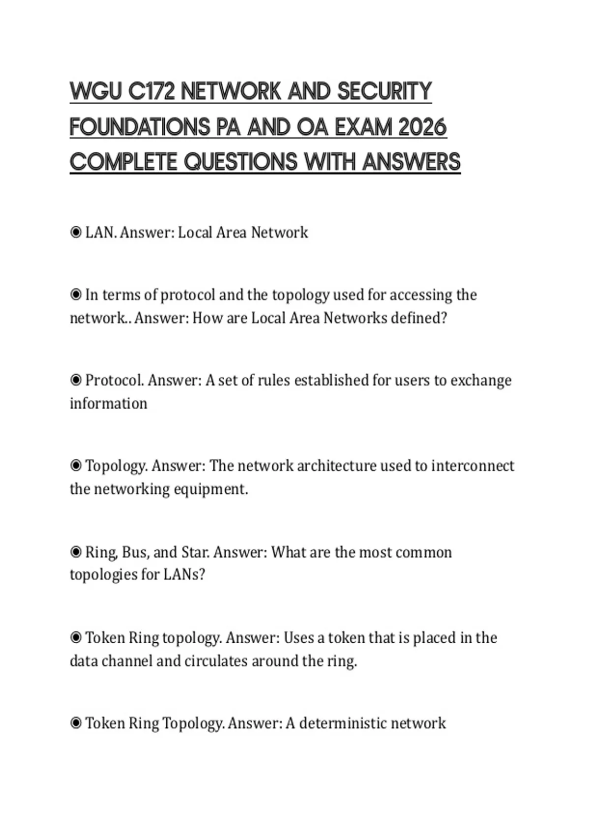 WGU C172 NETWORK AND SECURITY FOUNDATIONS PA AND OA EXAM 2026 COMPLETE QUESTIONS WITH ANSWERS