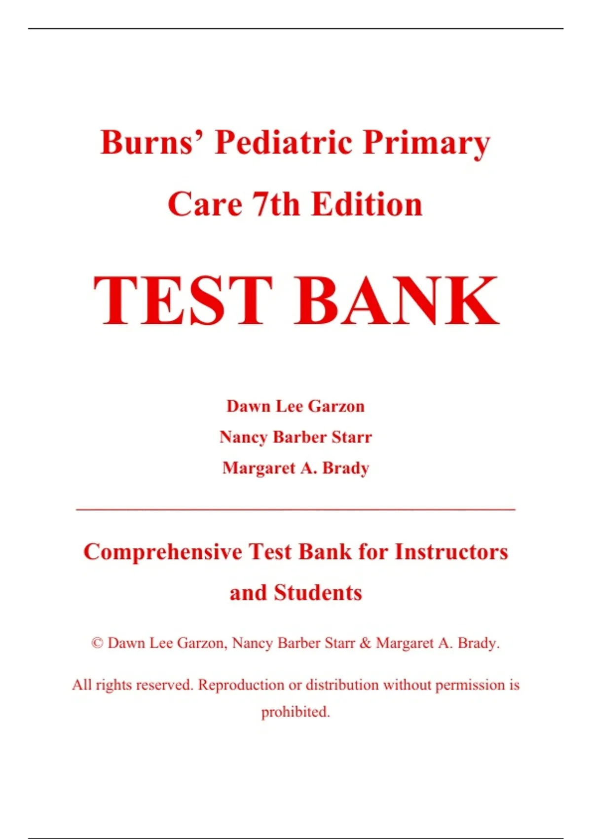 Complete Test Bank - Burns' Pediatric Primary Care, 7th Edition – Dawn Lee Garzon, Nancy Barber Starr, Margaret A. Brady – ISBN 9780323581967 (All Chapters Covered 1–46)