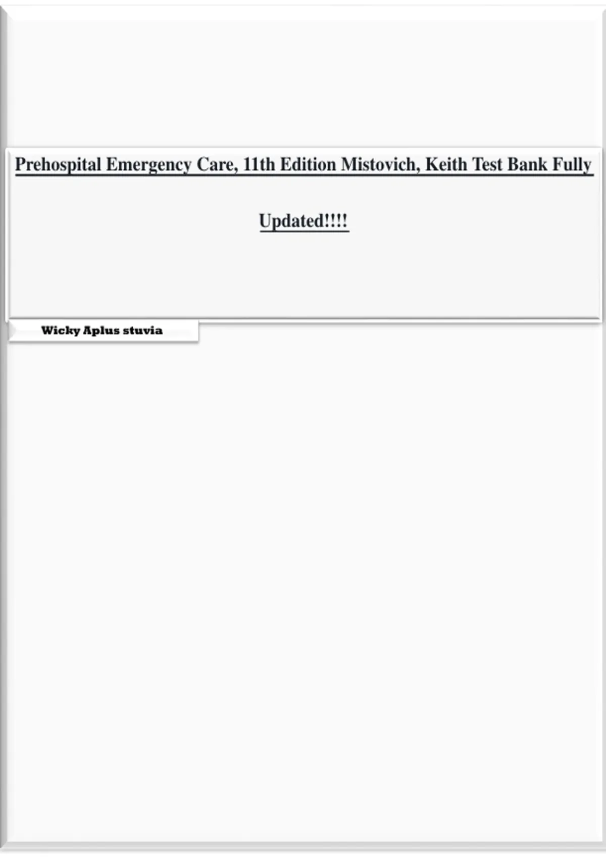 Prehospital Emergency Care, 11th Edition Mistovich, Keith Test Bank Fully
