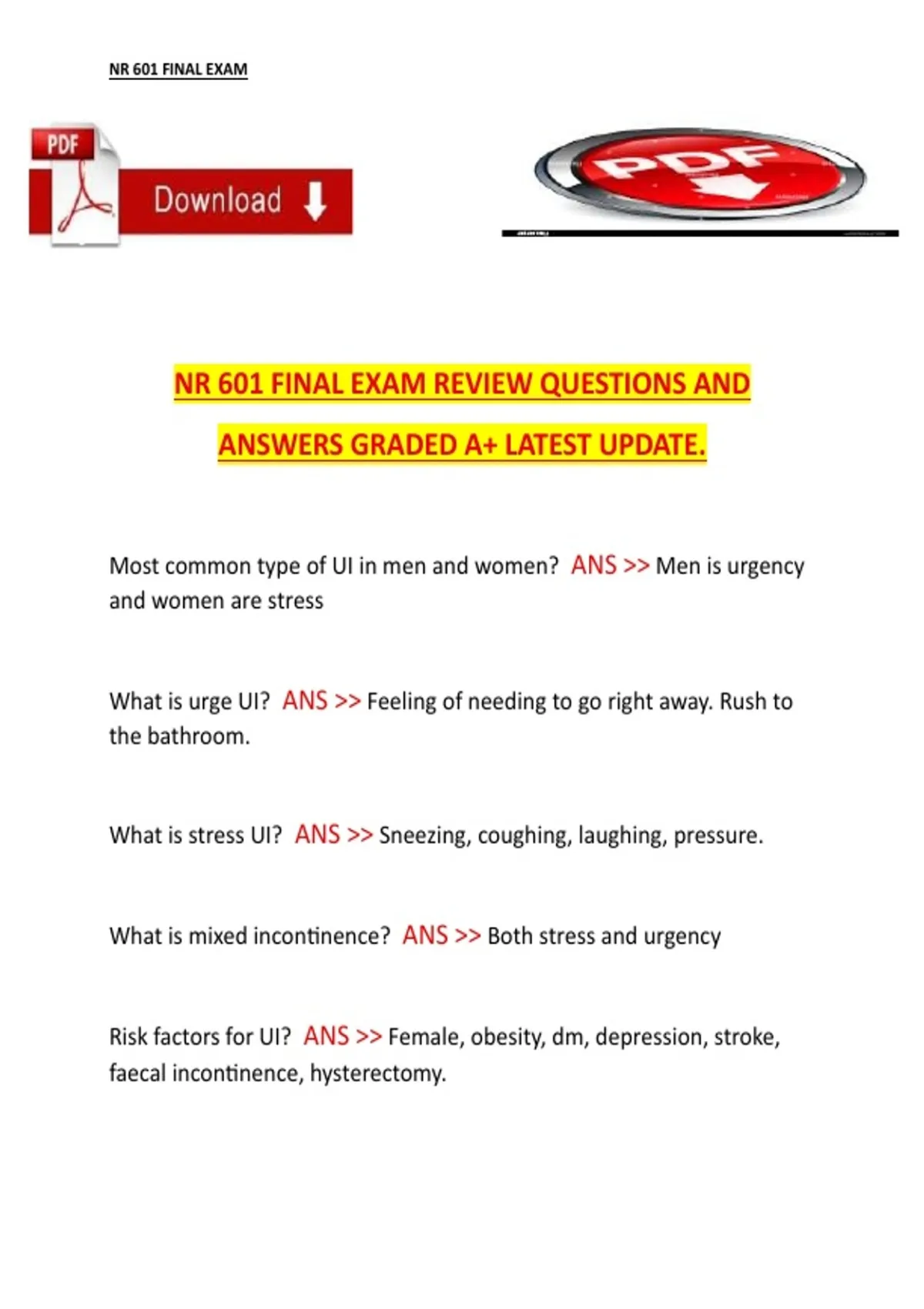 NR 601 FINAL EXAM REVIEW QUESTIONS AND
