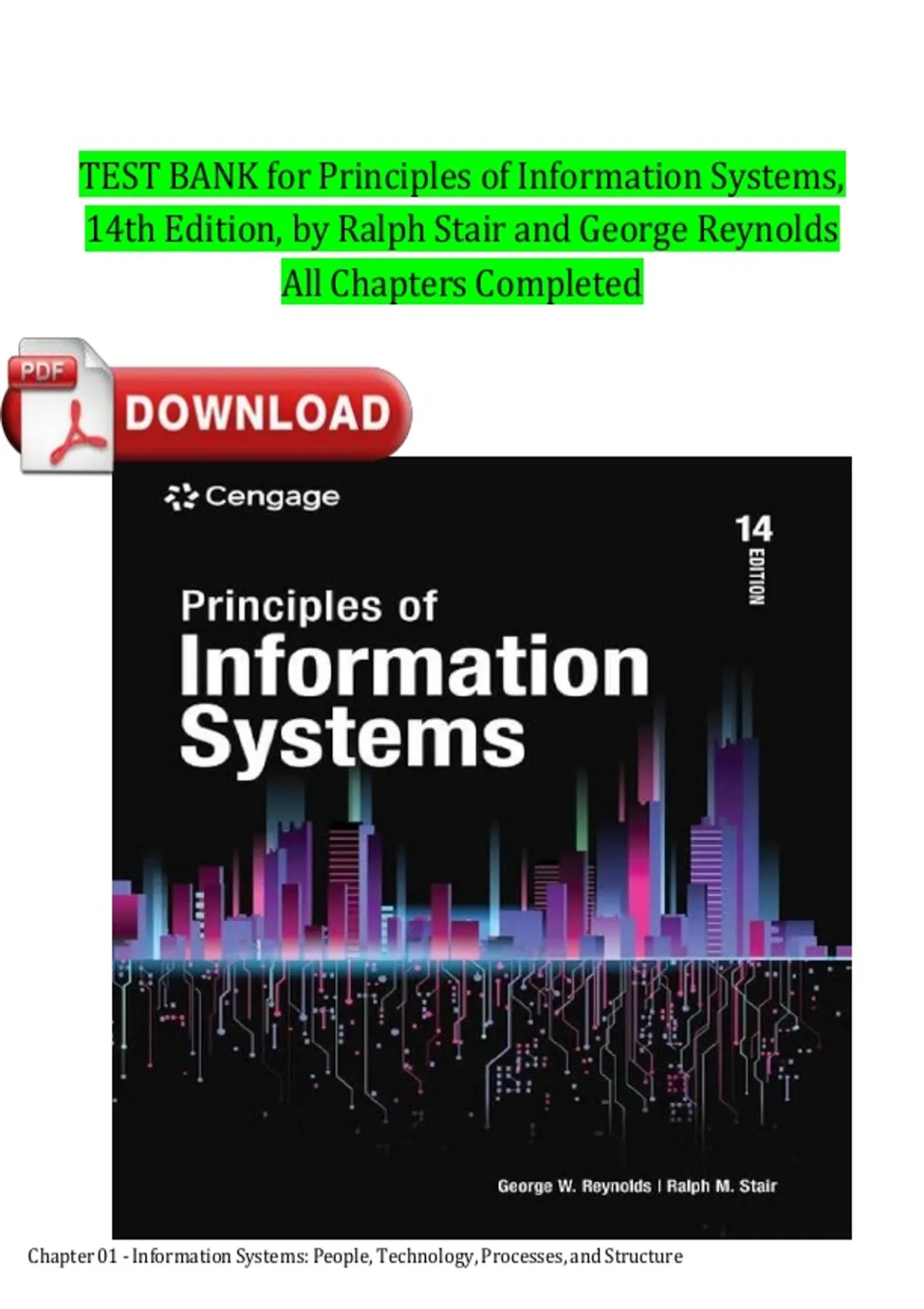 TEST BANK for Principles of Information Systems, 14th Edition, by Ralph Stair and George Reynolds All Chapters Completed