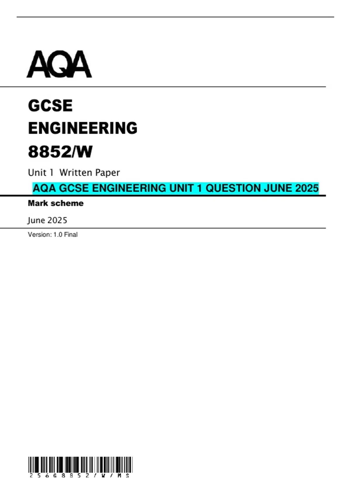 AQA GCSE ENGINEERING UNIT 1 QUESTION JUNE 2025