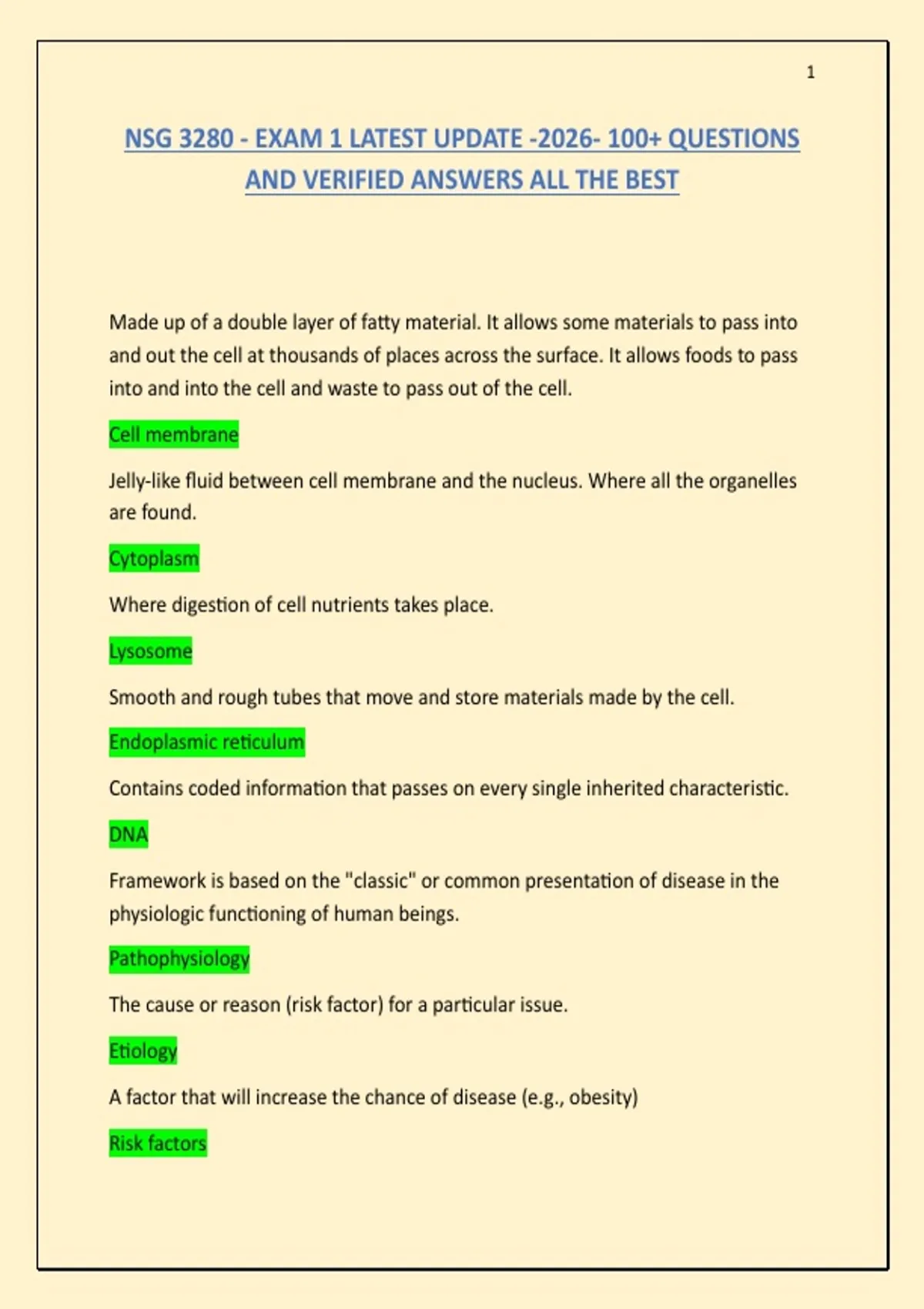 NSG 3280 - EXAM 1 LATEST UPDATE -2026- 100+ QUESTIONS