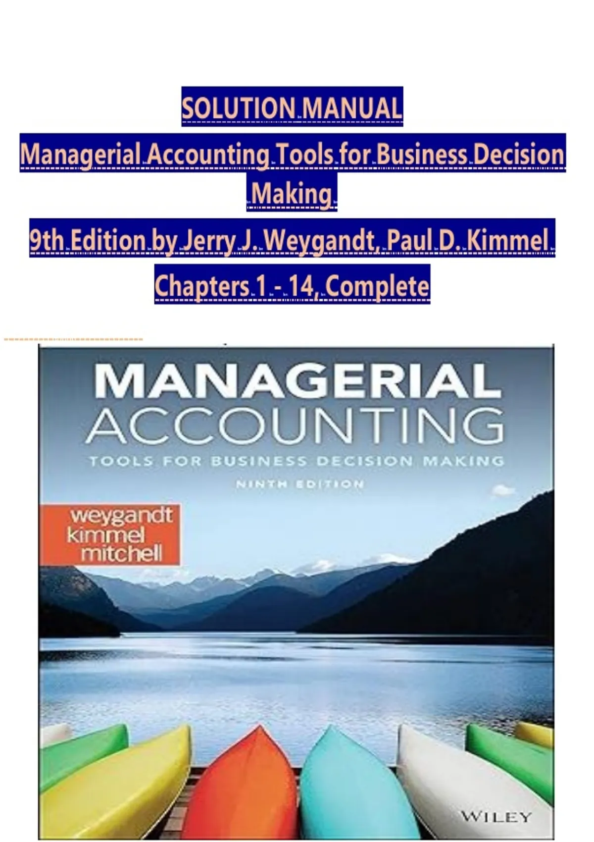 9th Edition by Jerry J. Weygandt, Paul D. Kimmel