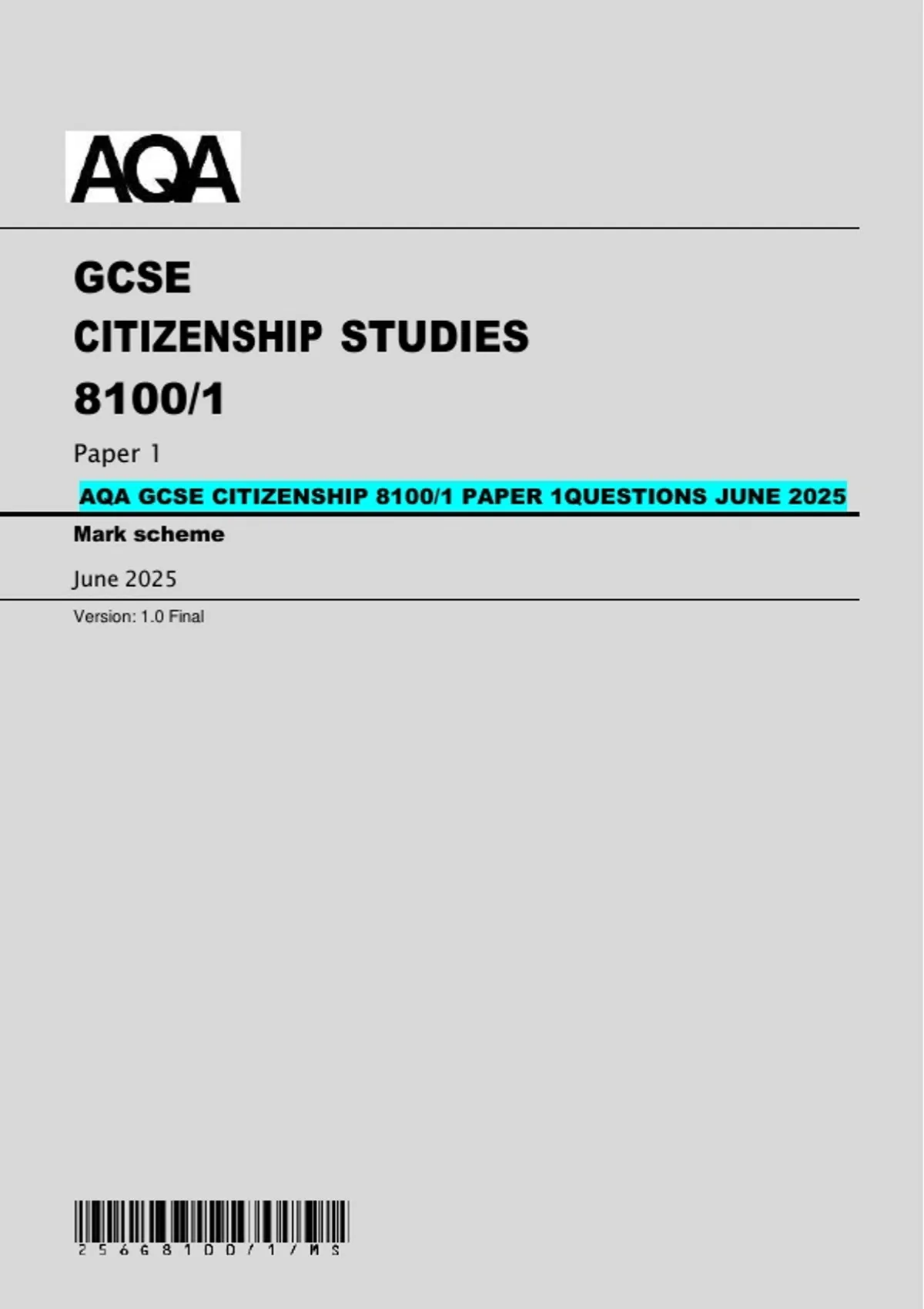 AQA GCSE CITIZENSHIP 8100/1 PAPER 1QUESTIONS JUNE 2025