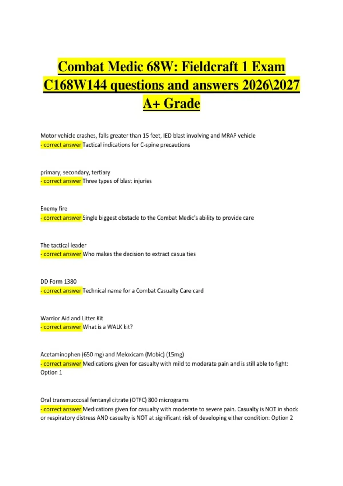 - correct answer Medications given for casualty with moderate to severe pain. Casualty is NOT in shock