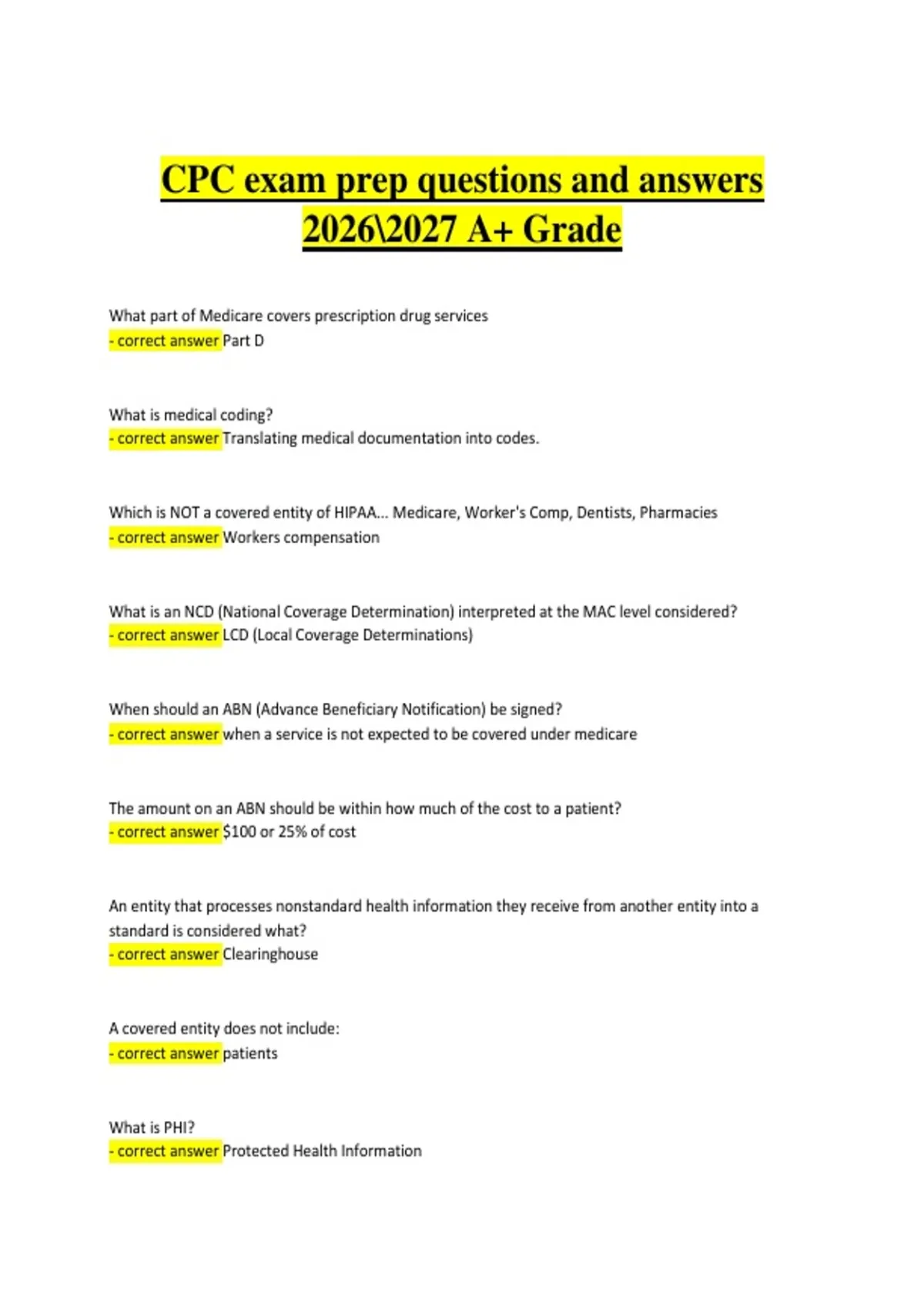 - correct answer LCD (Local Coverage Determinations)
