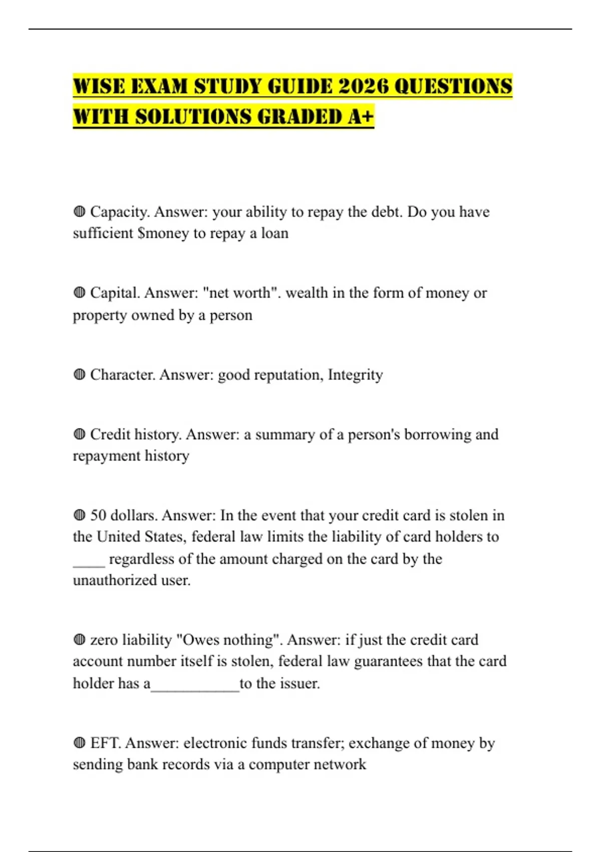 ◍ Credit history. Answer: a summary of a person's borrowing and