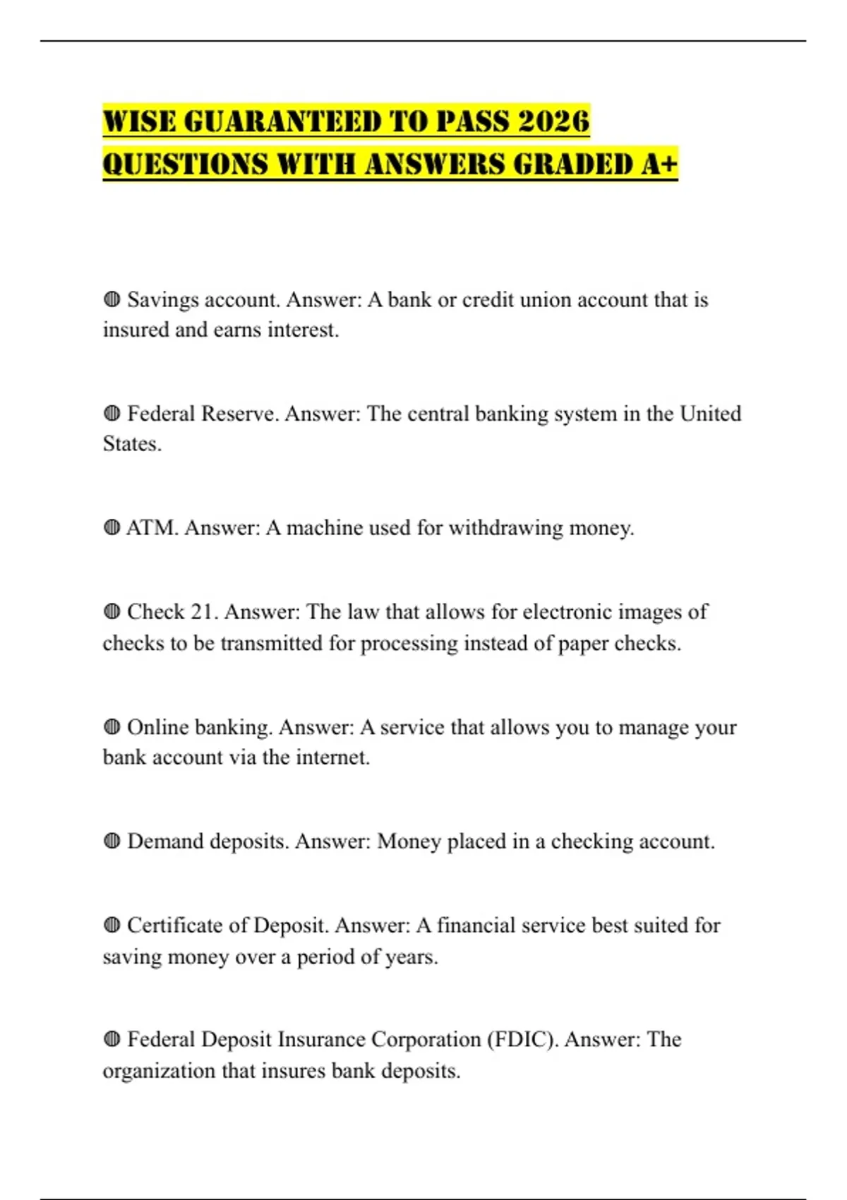 ◍ Savings account. Answer: A bank or credit union account that is