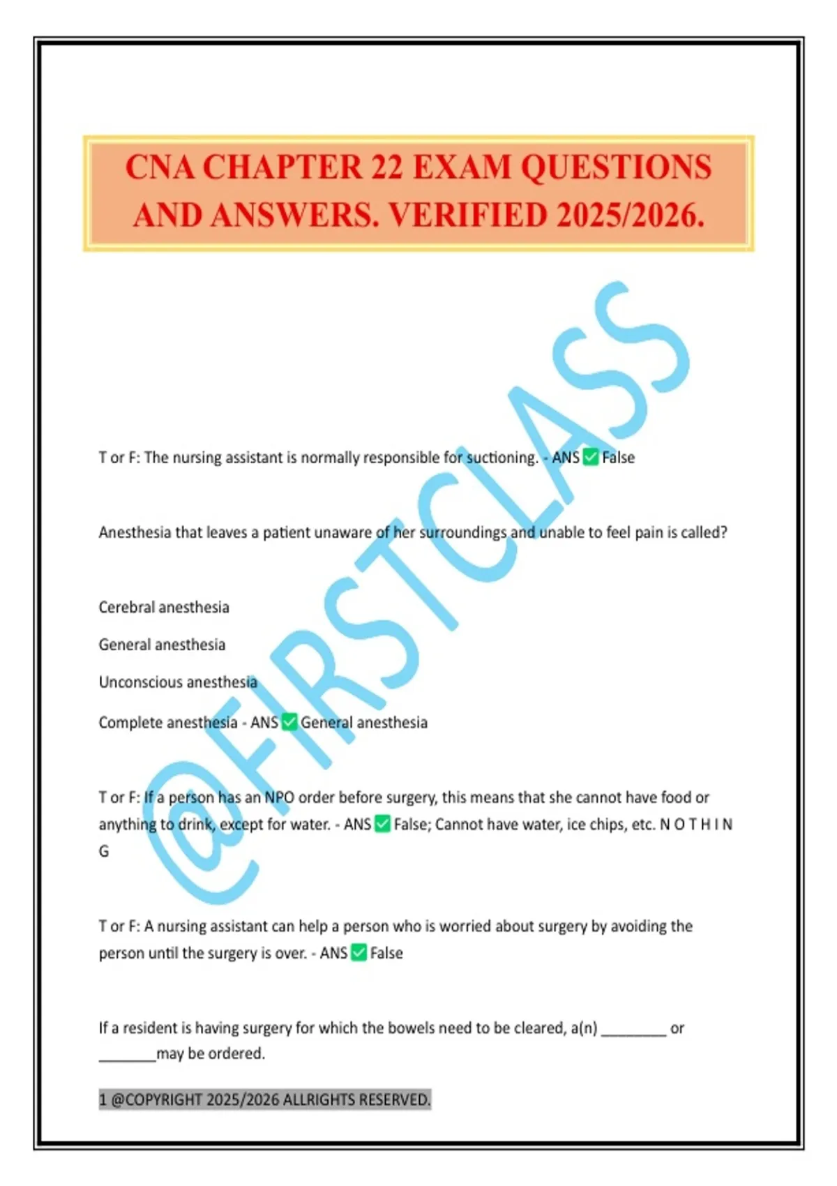 CNA CHAPTER 22 EXAM QUESTIONS AND ANSWERS. VERIFIED 2025/2026.