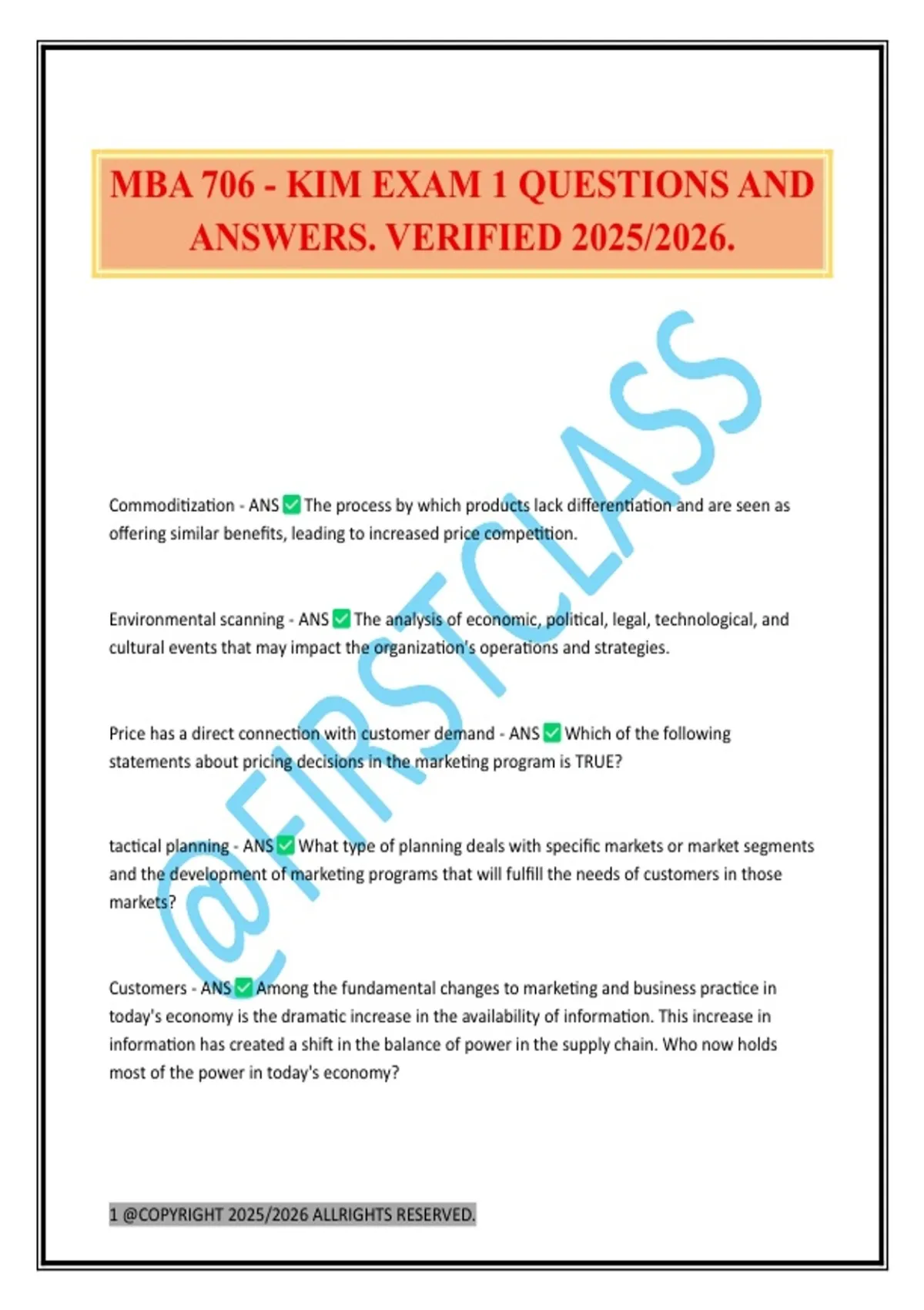 MBA 706 - KIM EXAM 1 QUESTIONS AND ANSWERS. VERIFIED 2025/2026.