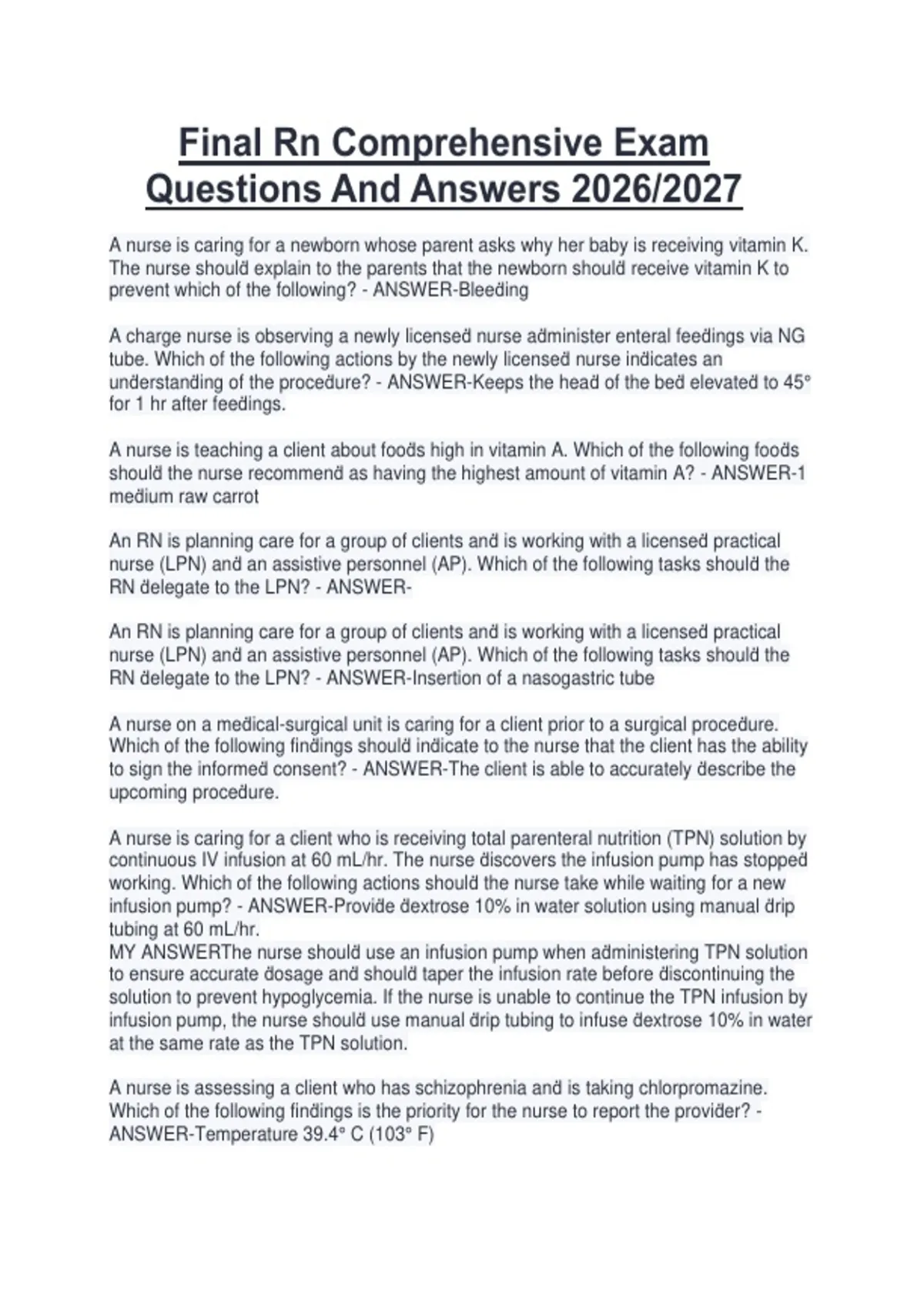 Questions And Answers 2026/2027