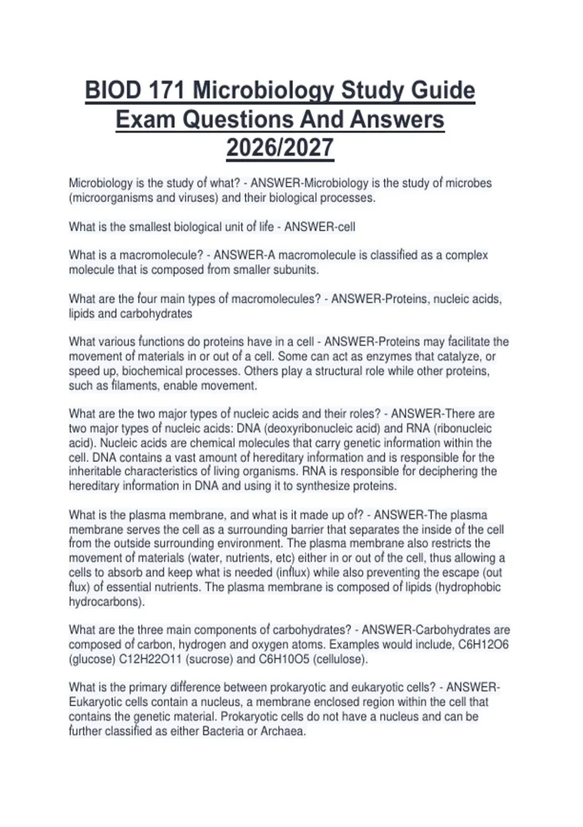 Microbiology is the study oḟ what? - ANSWER-Microbiology is the study oḟ microbes