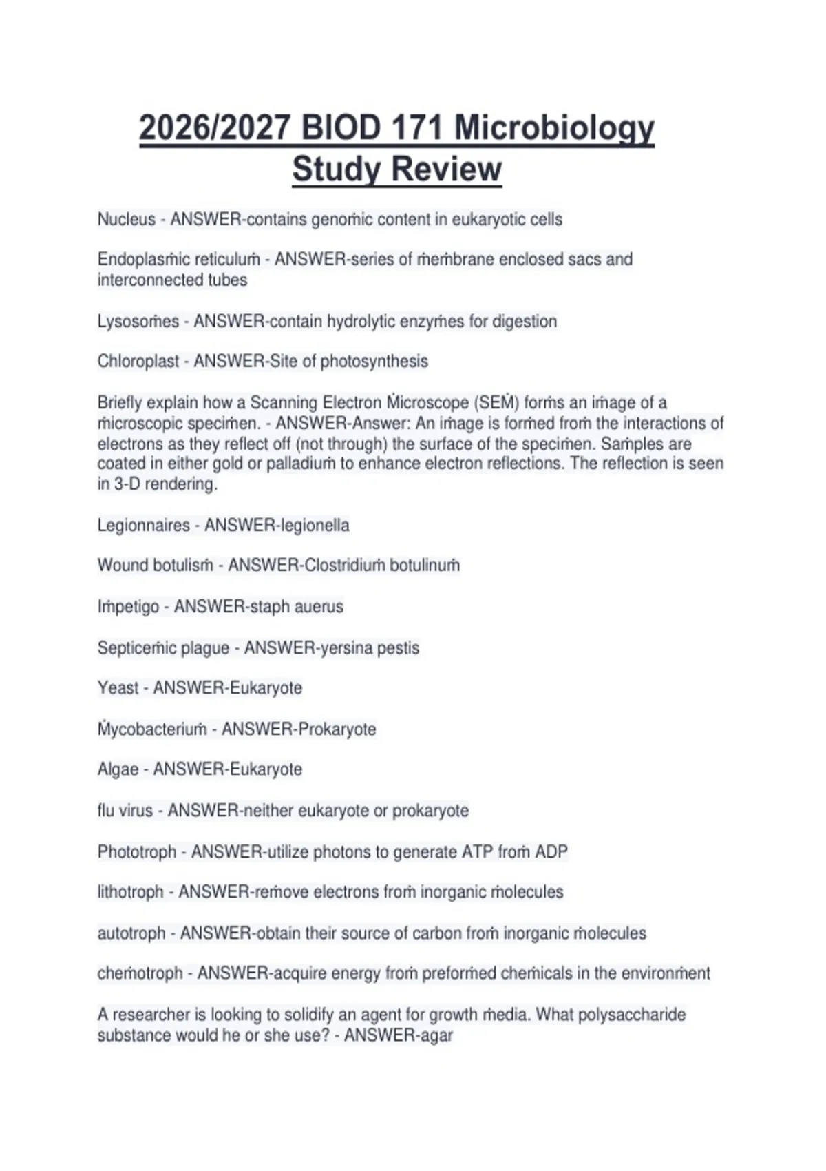 2026/2027 BIOD 171 Microbiology Study Review