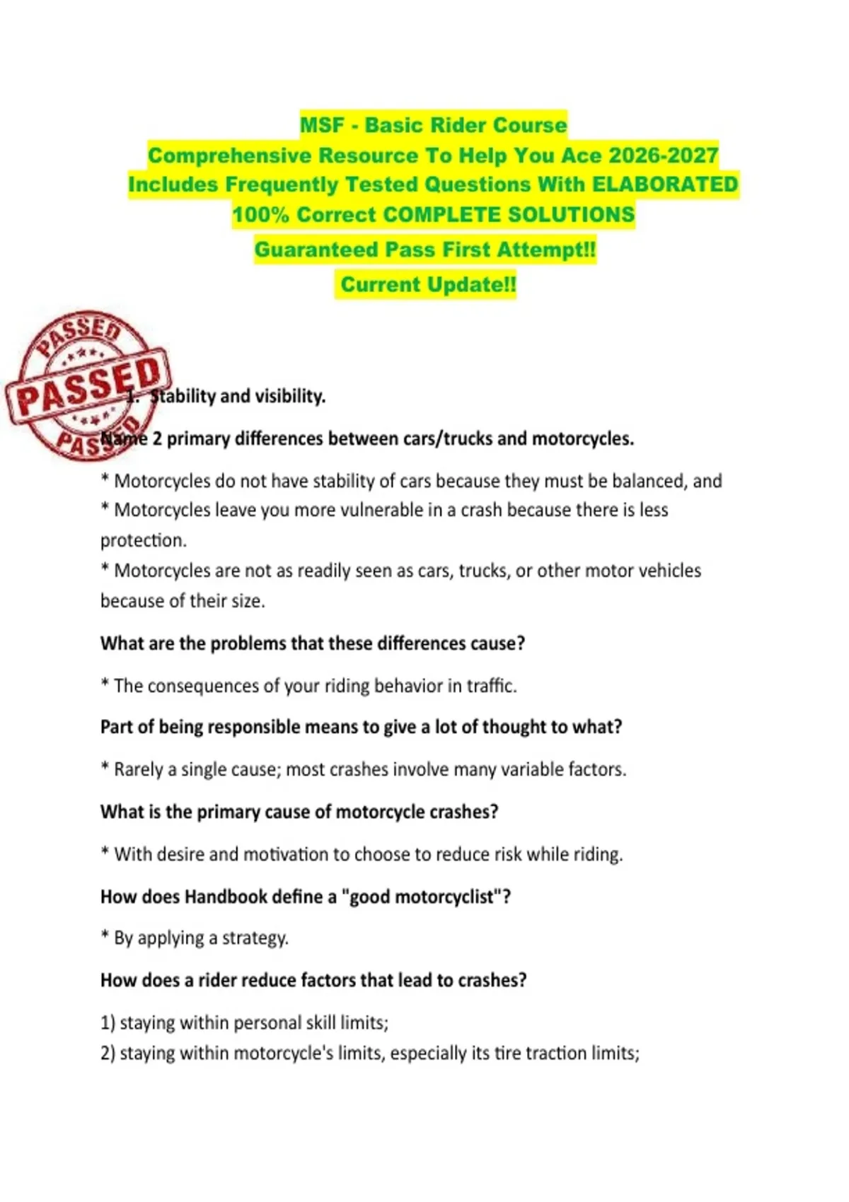 * Motorcycles do not have stability of cars because they must be balanced, and