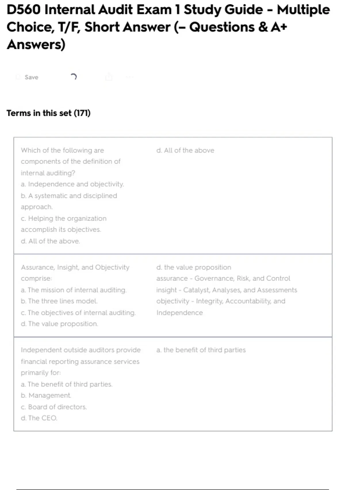 Assurance, Insight, and Objectivity d. the value proposition
