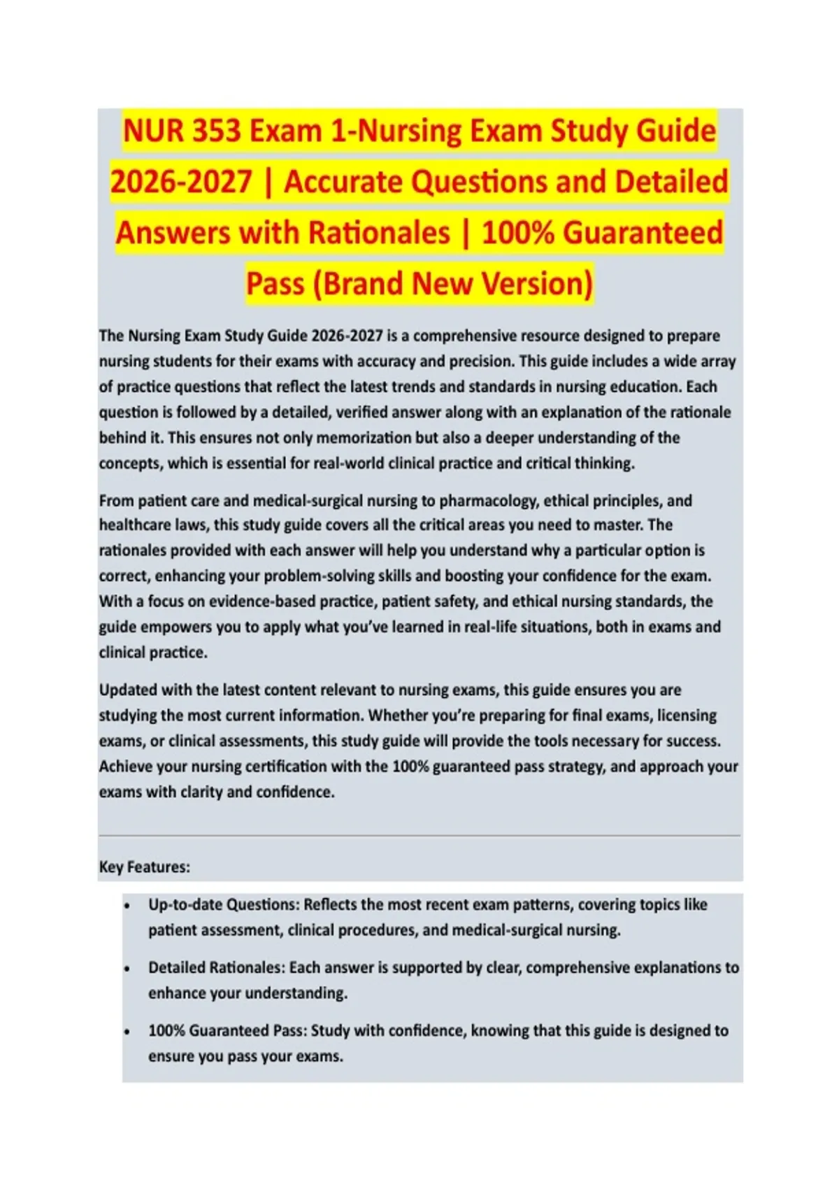 Updated with the latest content relevant to nursing exams, this guide ensures you are