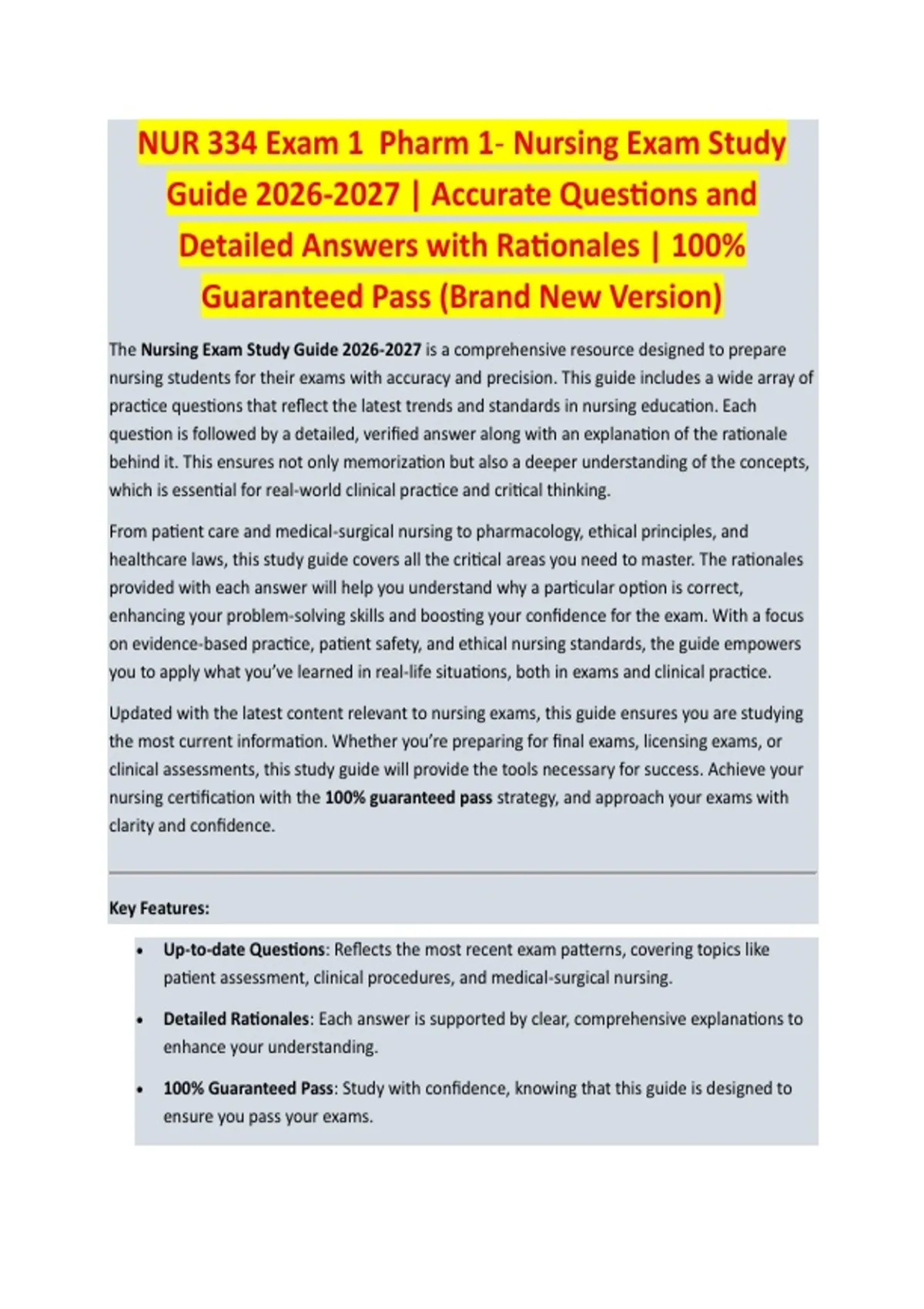 NUR 334 Exam 1 Pharm 1 - NURSING EXAM STUDY GUIDE ACCURATE QUESTIONS AND CORRECT DETAILED ANSWERS WITH RATIONALES || 100% GUARANTEED PASS &lt;BRAND NEW VERSION&gt;