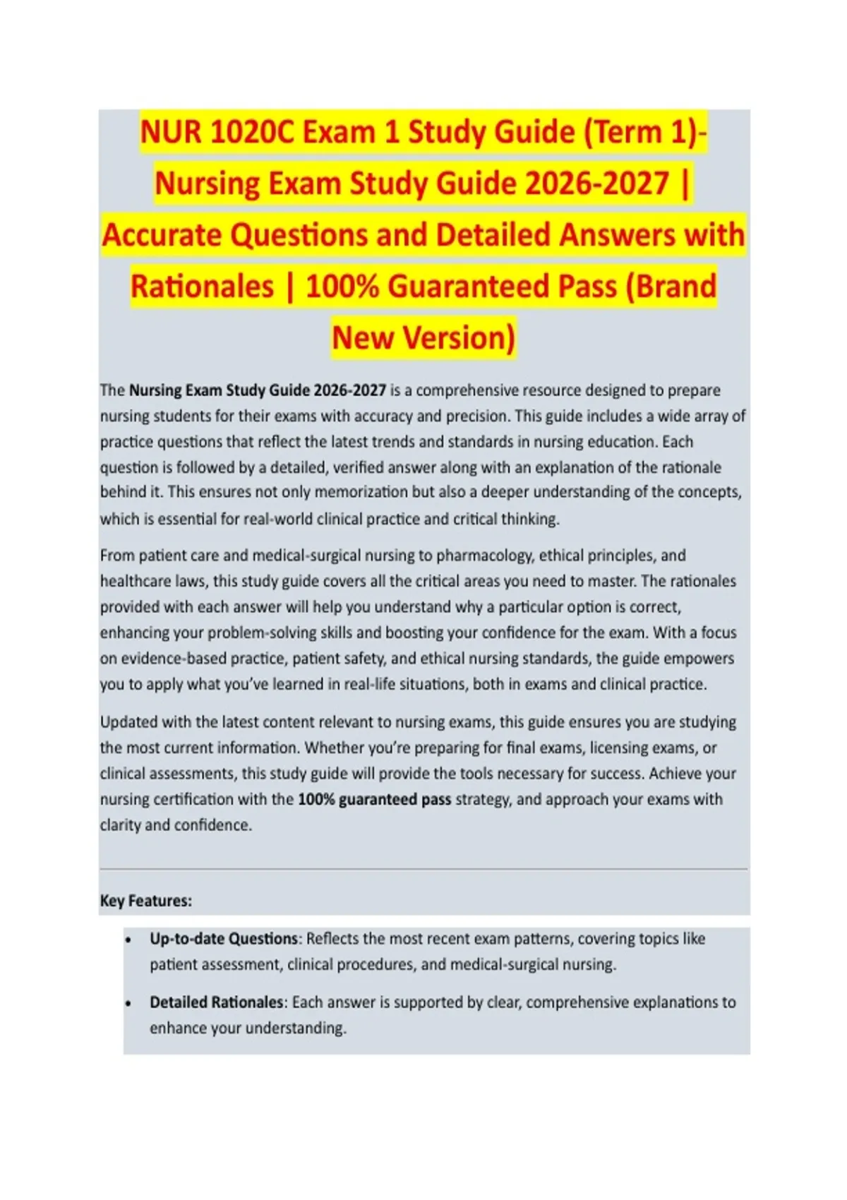 Updated with the latest content relevant to nursing exams, this guide ensures you are studying