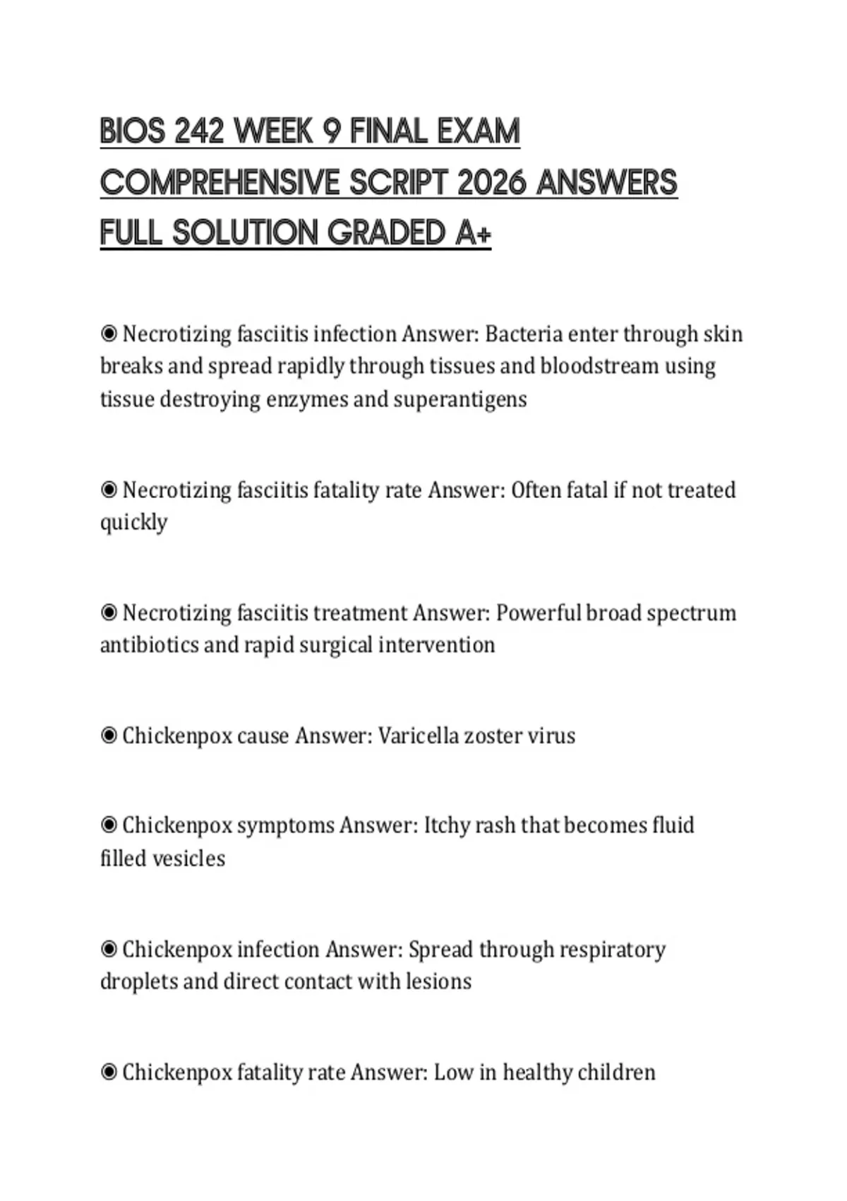 BIOS 242 WEEK 9 FINAL EXAM COMPREHENSIVE SCRIPT 2026 ANSWERS FULL SOLUTION GRADED A+