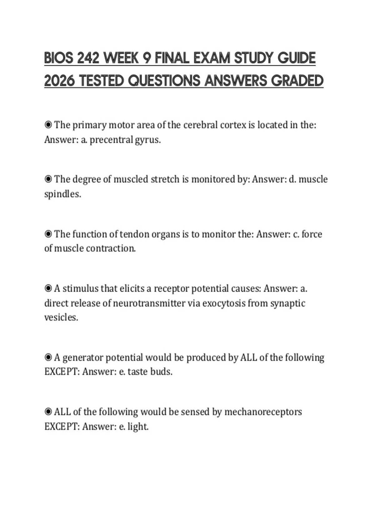 BIOS 242 WEEK 9 FINAL EXAM STUDY GUIDE 2026 TESTED QUESTIONS ANSWERS GRADED