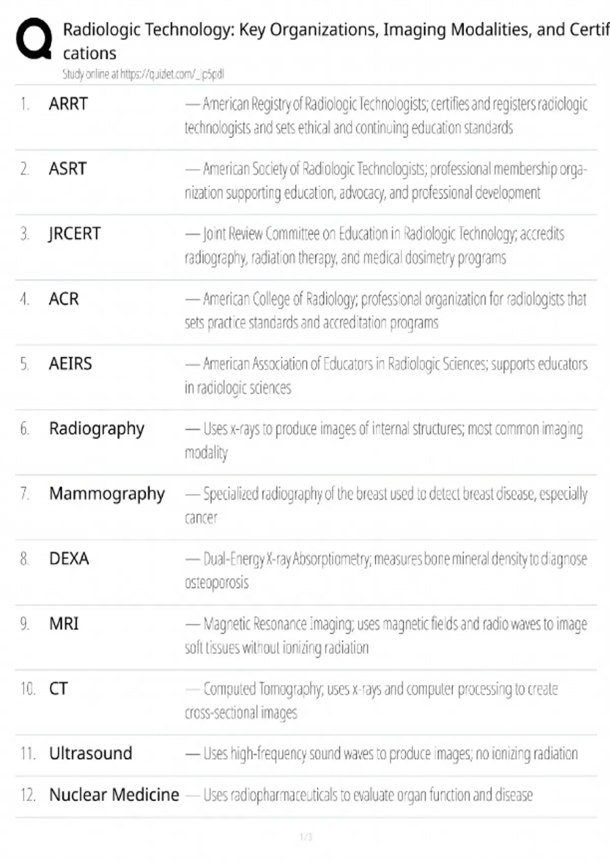 Radiologic Technology Study Guide / ARRT Exam Prep & Modalities Test Bank / 2025 Certification Review