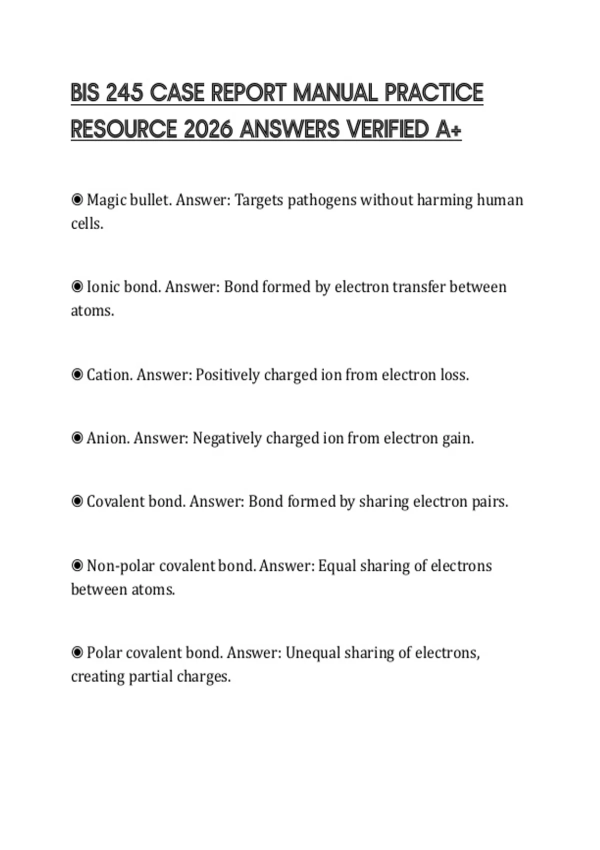 BIS 245 CASE REPORT MANUAL PRACTICE RESOURCE 2026 ANSWERS VERIFIED A+