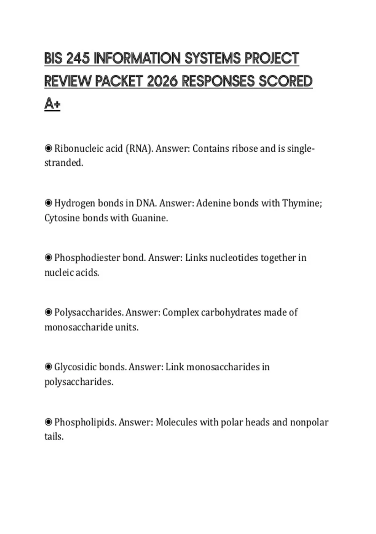 BIS 245 INFORMATION SYSTEMS PROJECT REVIEW PACKET 2026 RESPONSES SCORED A+