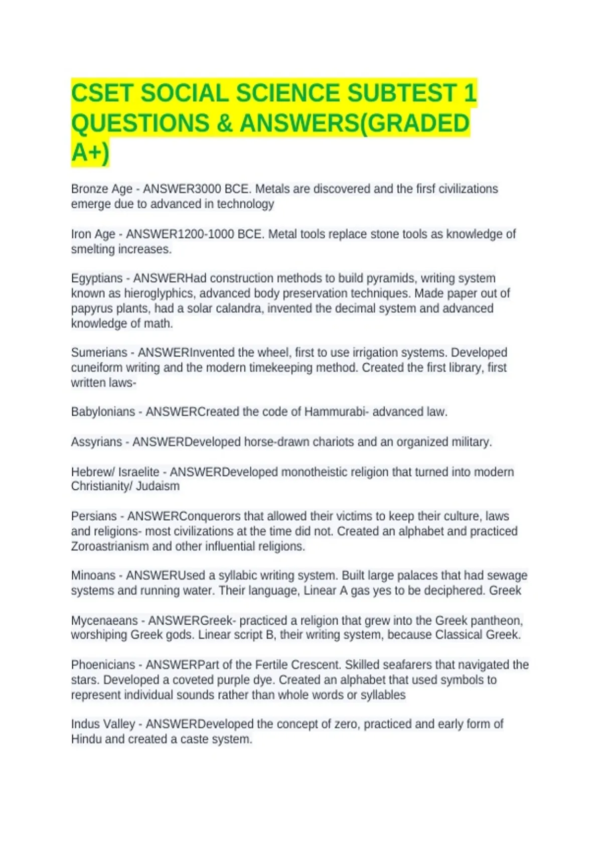 Bronze Age - ANSWER3000 BCE. Metals are discovered and the firsf civilizations