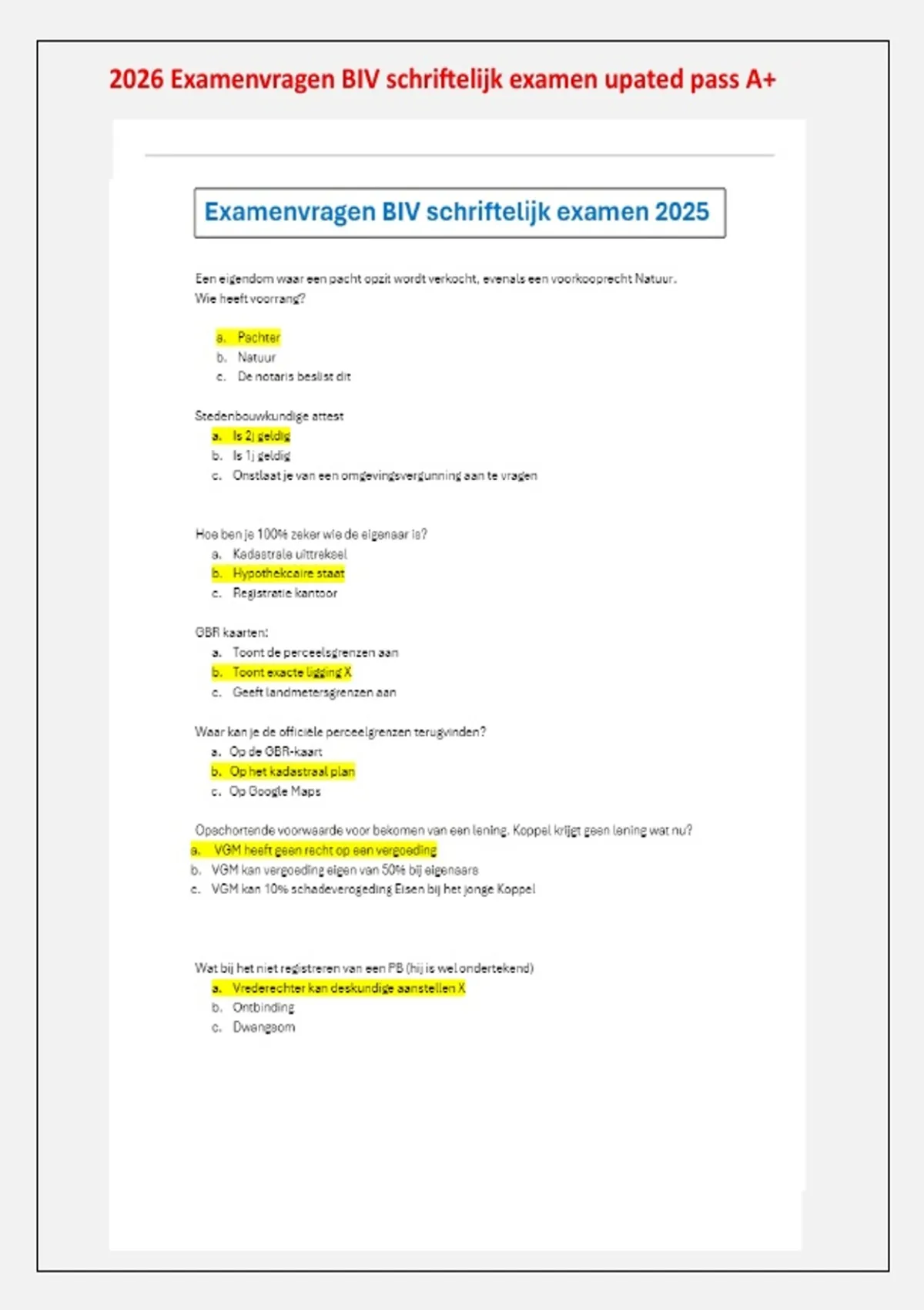 NEW Alle EXAMENVRAGEN Schriftelijk BIV + antwoorden 2026 updated