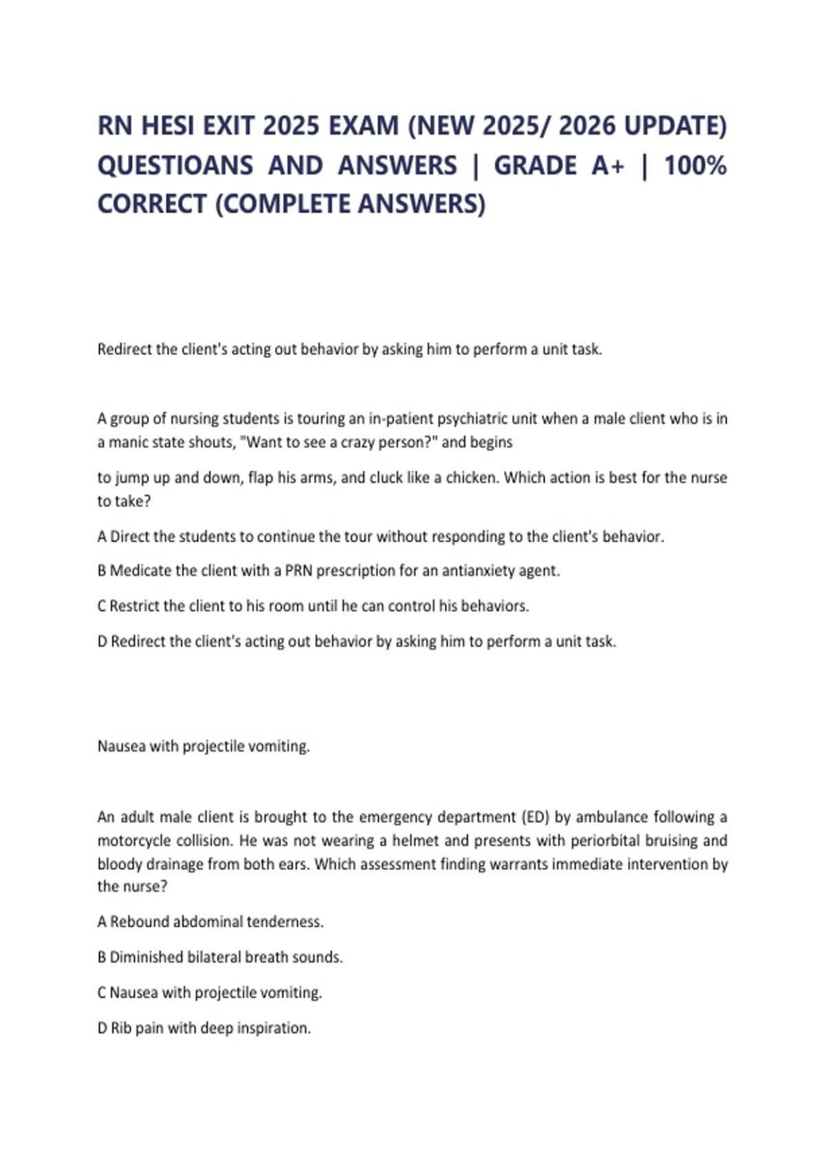 RN HESI EXIT 2025 EXAM (NEW 2025/ 2026 UPDATE)