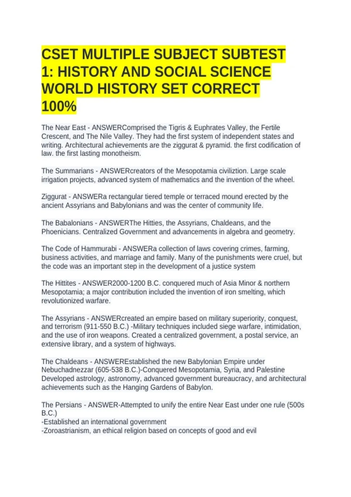 The Near East - ANSWERComprised the Tigris & Euphrates Valley, the Fertile