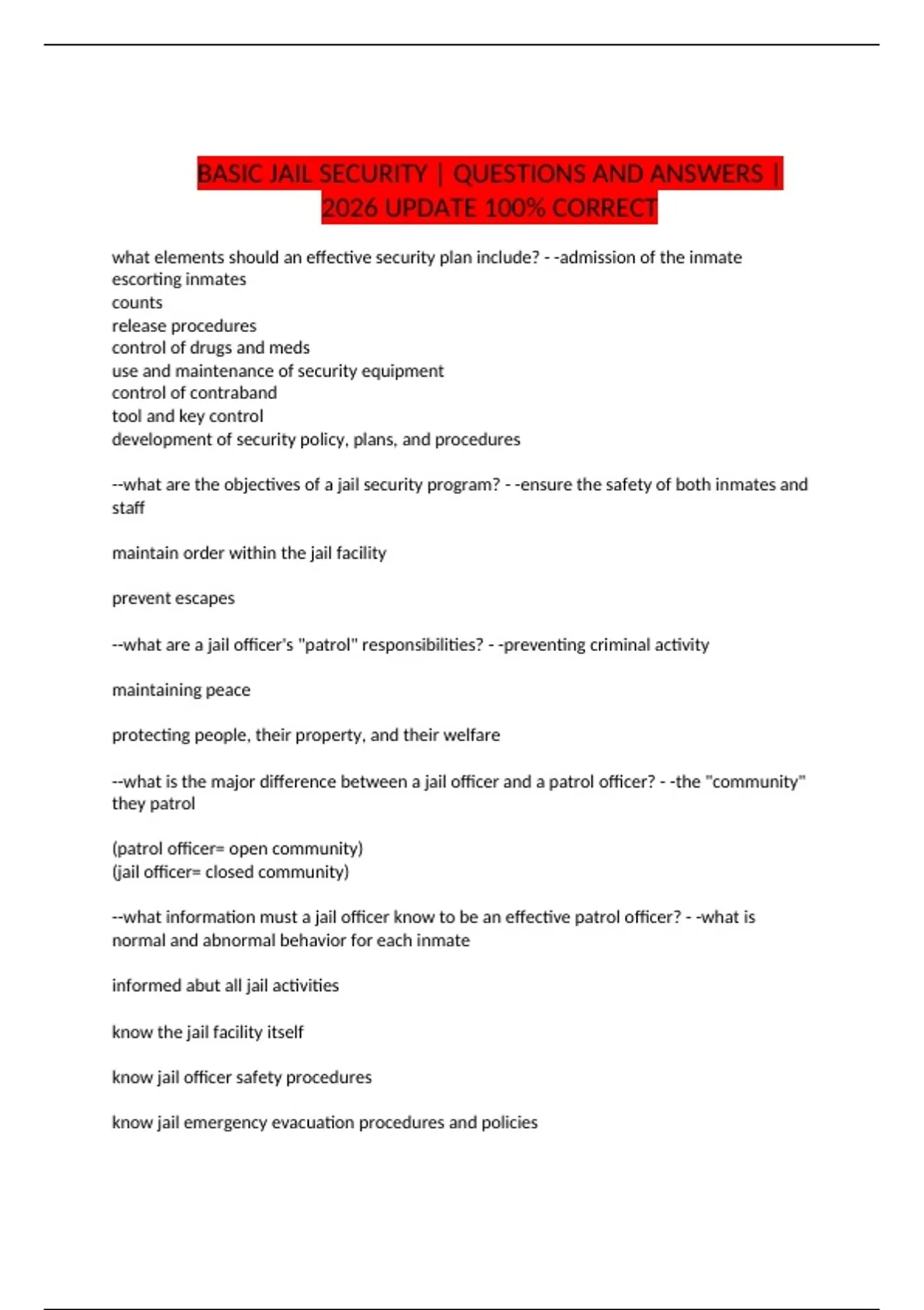 BASIC JAIL SECURITY | QUESTIONS AND ANSWERS |
