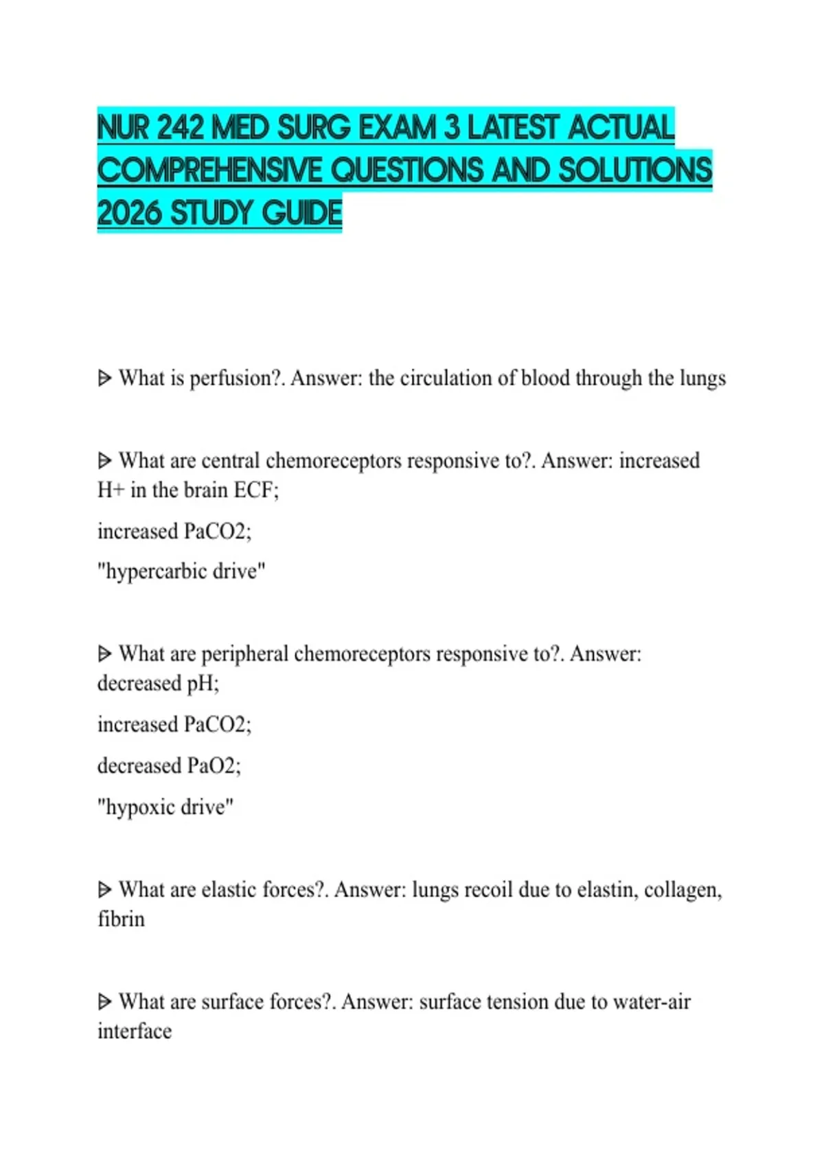 NUR 242 MED SURG EXAM 3 LATEST ACTUAL